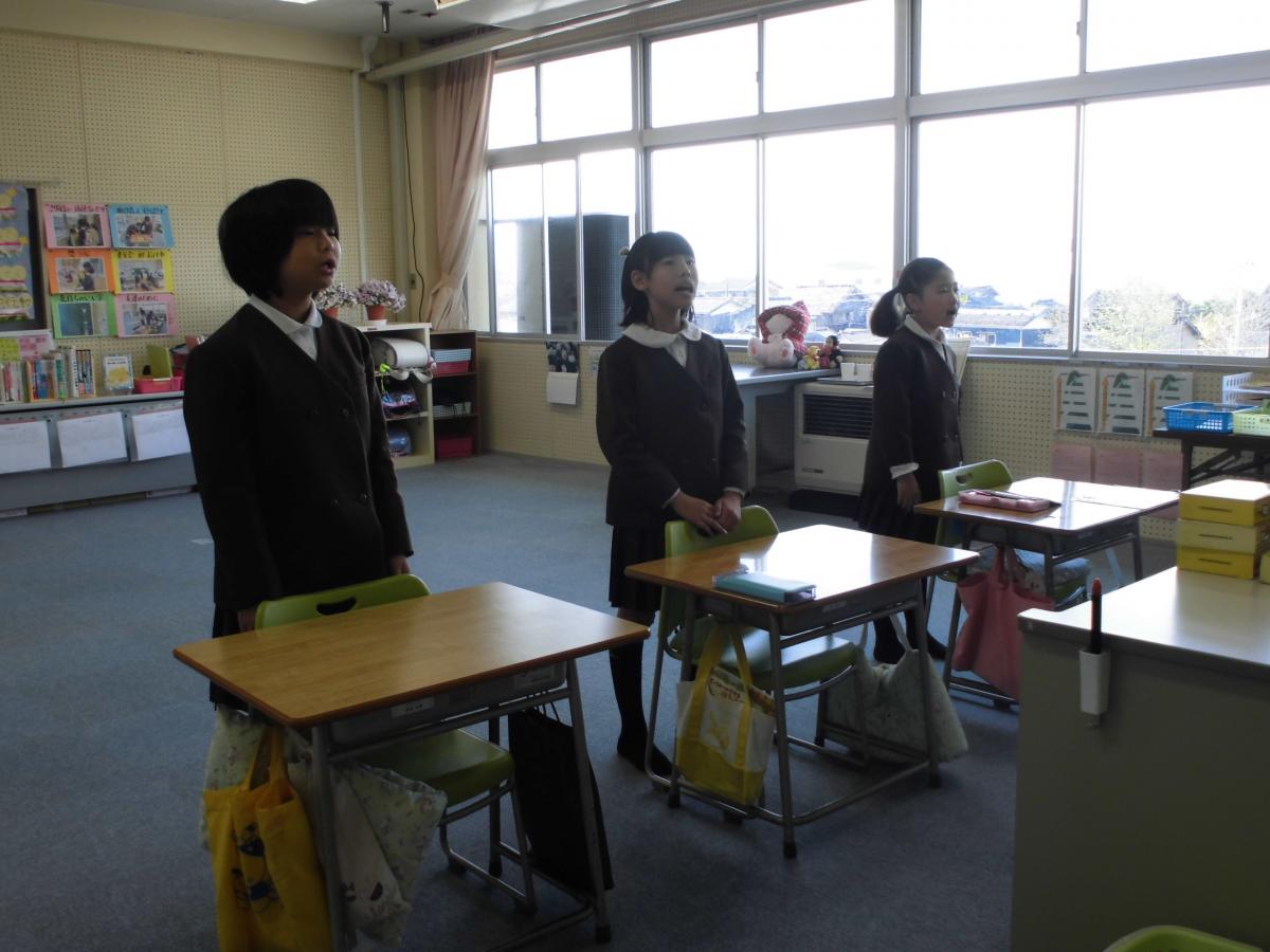朝の様子を見に行くと、今日もはりきって今月の歌を歌っていました。1・2年生の声も他の学年に負けずに届いてきました。