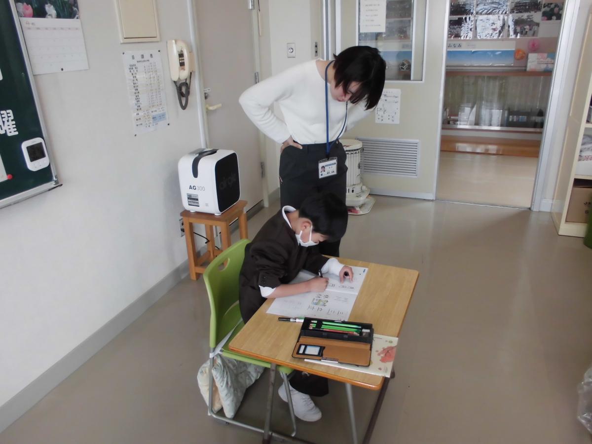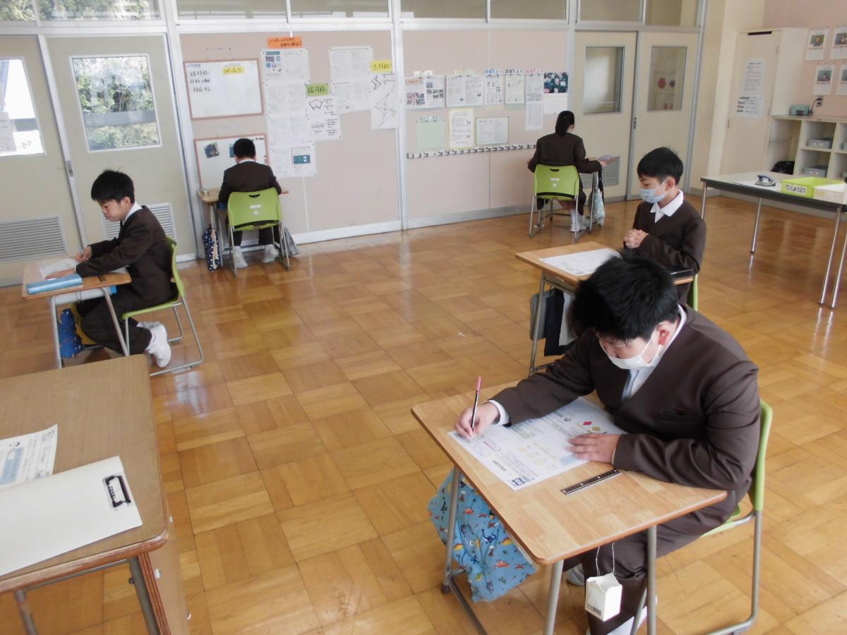 6年生は1限目から単元のまとめテストに取り組んでいました。学んだことがよい結果につながりますように!
