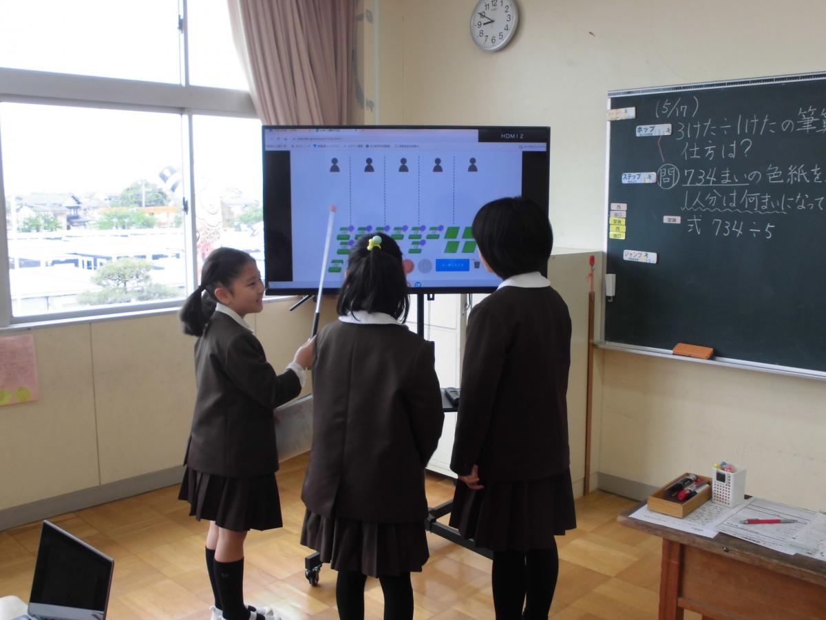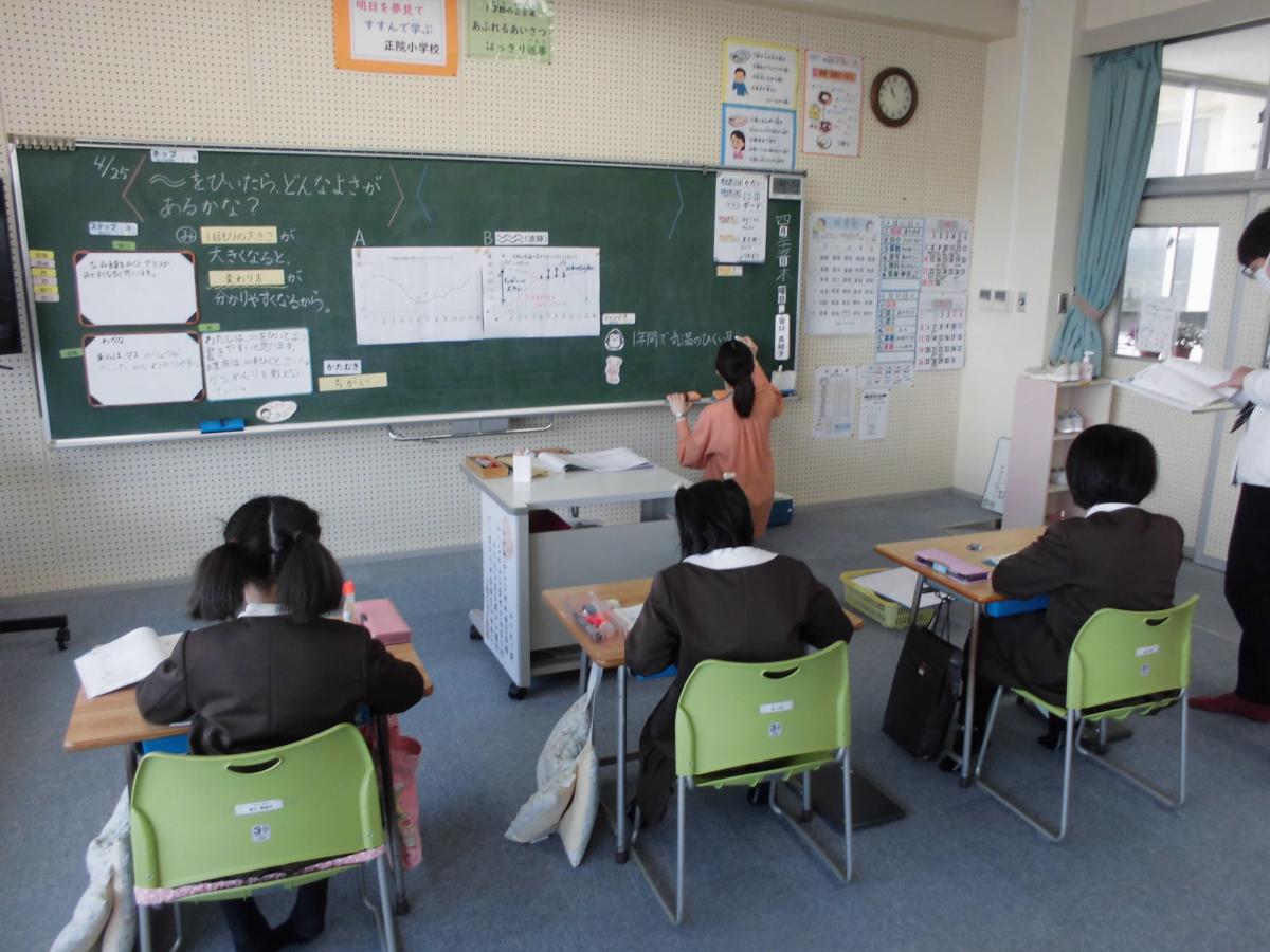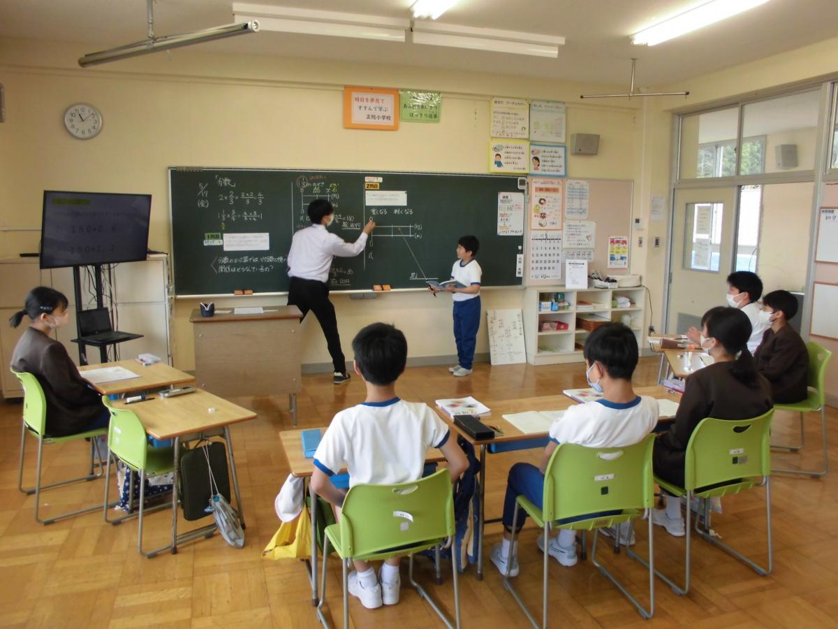 24日(水)の3限目に、学校研究の取組として公開授業がスタートしました。本校では、今年度も算数科を中心に「自分の考えを正しく表現できる児童」を目指した取組をスタートしました。本校の研究主任が率先して本日の授業公開を行ってくれました。