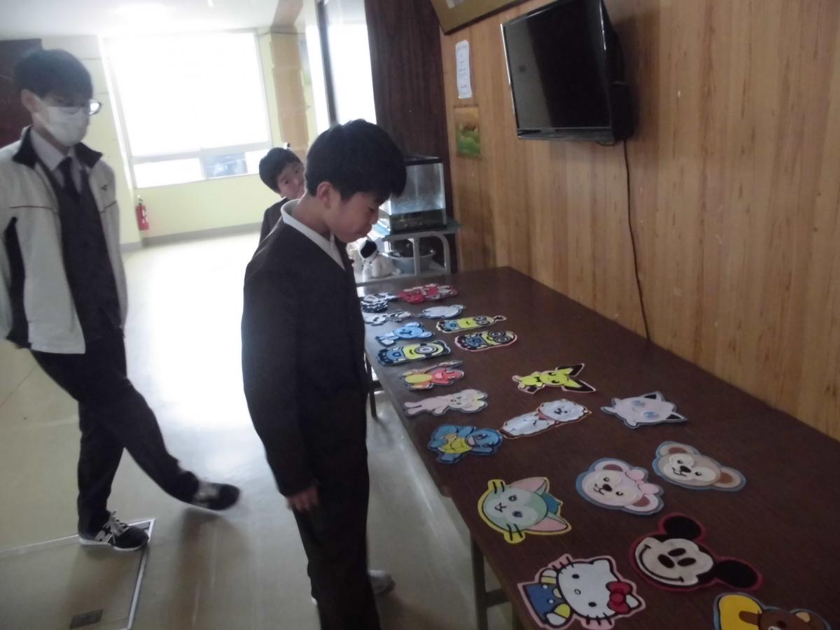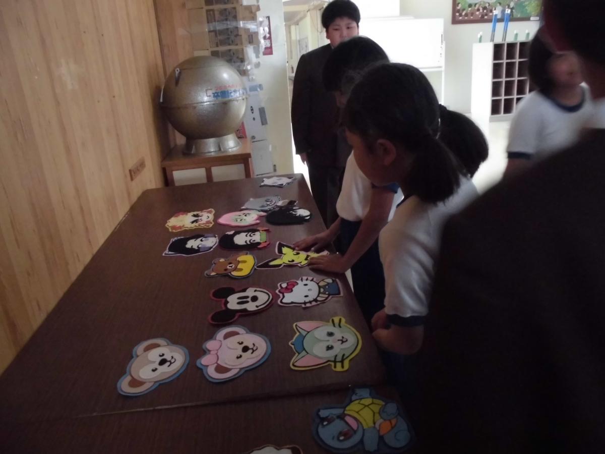 給食後、みんなで相談してほしいワッペンをみんなで分けました。素敵な贈り物をありがとうございました。