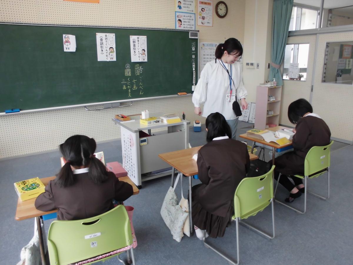 1限目の様子を見に行きました。4年生は国語「漢字辞典の使い方」でした。「合ってた!」とつぶやきながら辞書で調べる楽しさを感じながら学んでいました。2年生は書写、硬筆の学習です。静かに集中して、1字1字丁寧に書く姿が見られました。1年生は道徳、安全な生活について考えていました。イラストから考えられる危険を考え、自分の考えを伝い合う姿が見られました。6年生は国語、互いが考えたことについてその感想を交流する時間でした。互いに書いた文を回して読み、付箋にしっかり感想を書く姿が見られました。