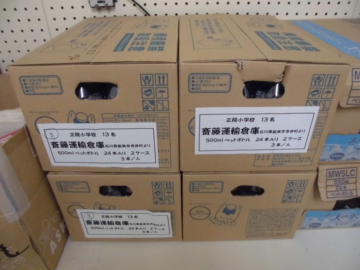 ④しんかわ様より…毎週のように水2箱の提供をいただいております。
