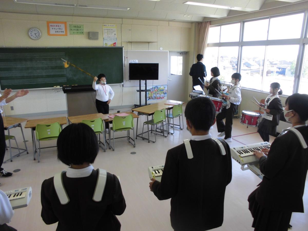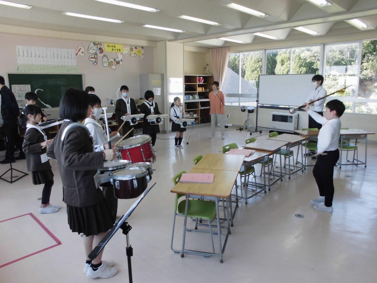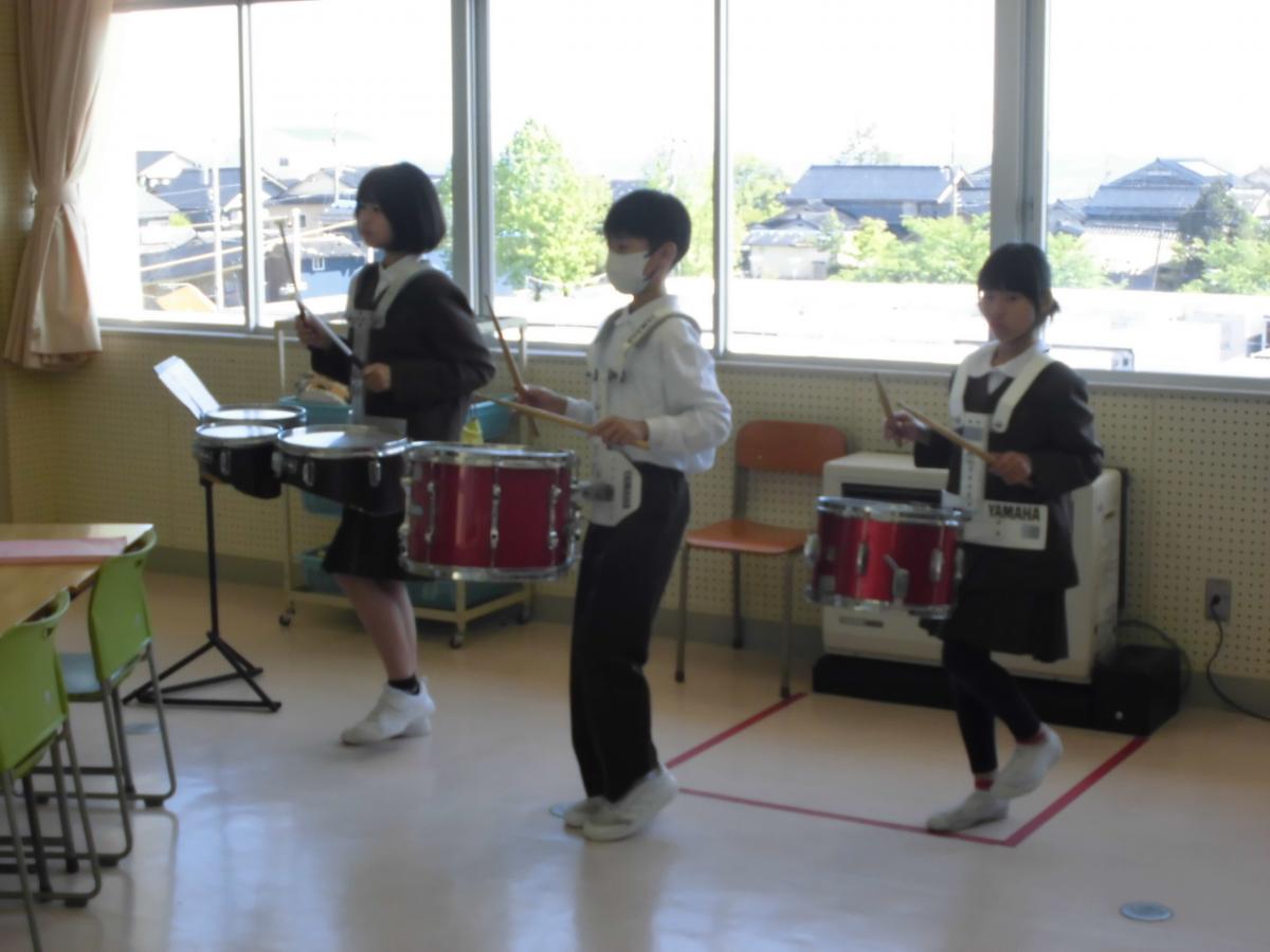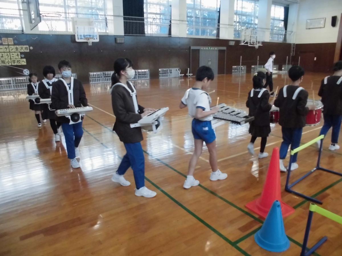 25日(木)の昼休み、4~6年生は音楽室と理科室に分かれて鼓笛練習に取り組んでいました。昨日からスタートした鼓笛練習、約1か月半後の鼓笛パレードに向けての練習です。昨年度からメンバーが減り、今年度は4年生も楽器を担当します。初めての学期に戸惑いながらも、6年生の指導を受けて、集中して練習する姿がかっこよかったです。