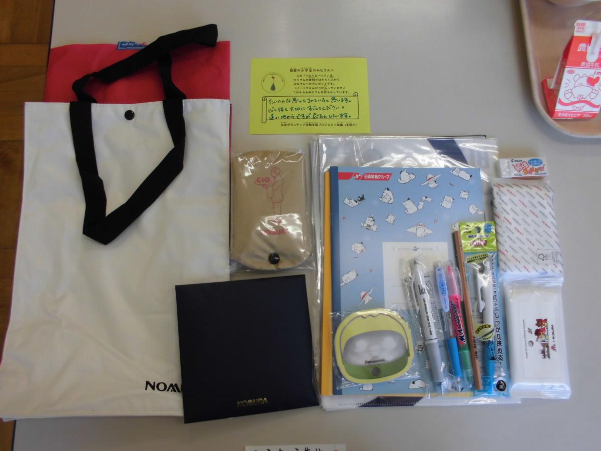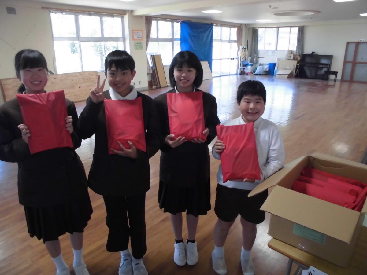 ⑧金沢市・岡西様より…1・2年生へ道具袋をいただきました。