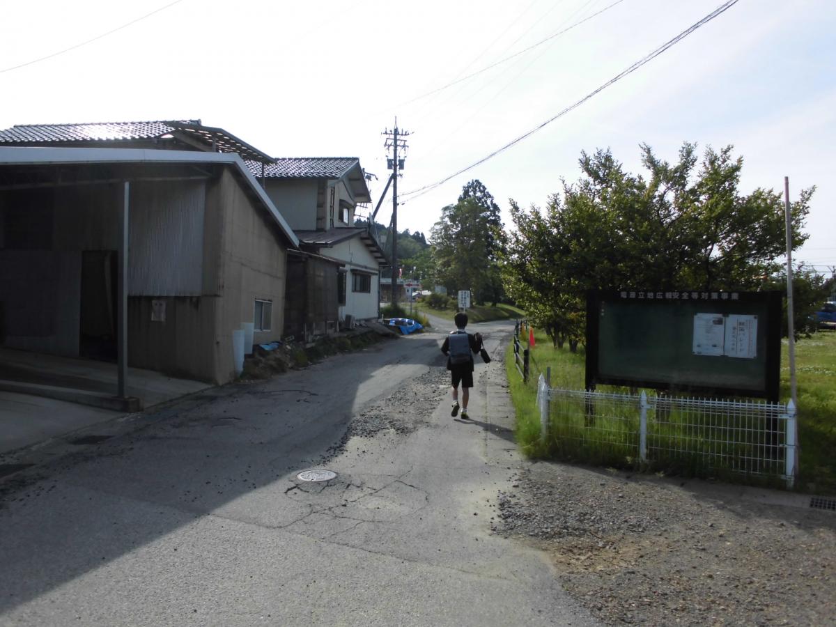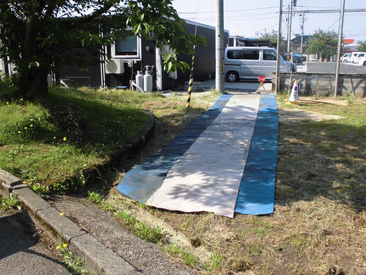グラウンドの仮設住宅から通っている児童もいますが、境目は草むらを歩く様子が見えたので、カーペットを敷いて通学路風にしてみました。