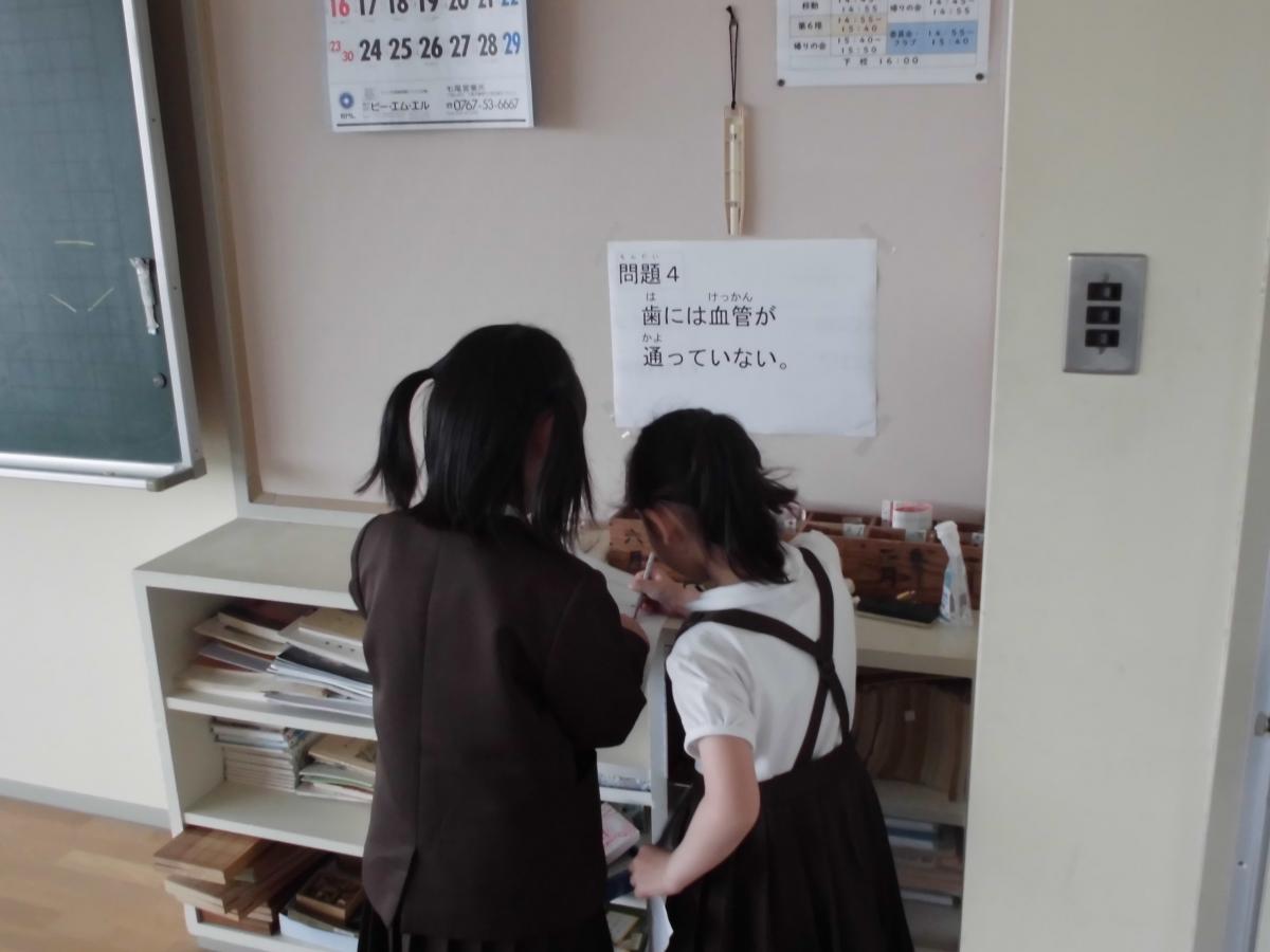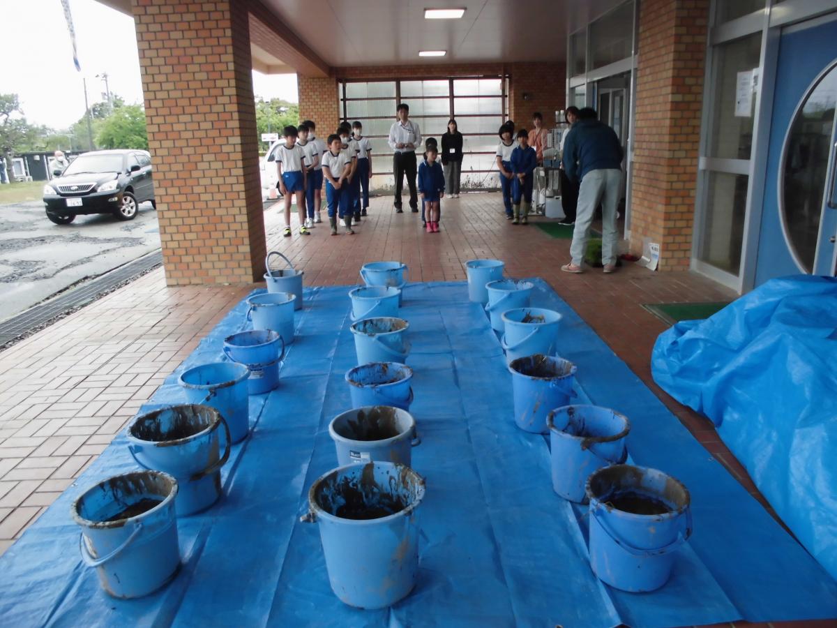6日(木)、今朝も快晴です。校門のつつじが今日も輝いて見えます。先日植えたバケツ稲もすくすく育っているようです。舎を回ると、早速早い時間に登校した1・2年生が、協力して保健委員会が企画した歯のクイズに挑戦し、走り回っていました。朝から元気に活動する児童の姿に元気をもらいました!