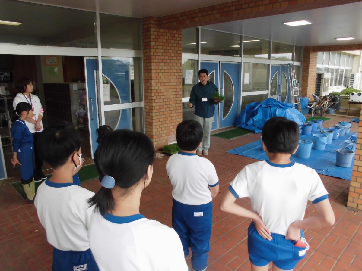 植え方の説明を一通り聞いた後、児童は来ていただいた皆さんと協力して楽しそうに花を植えていました。「あーすればいい。」「こうすればいい。」と話し合いながら植える様子は本当に微笑ましい光景でした。