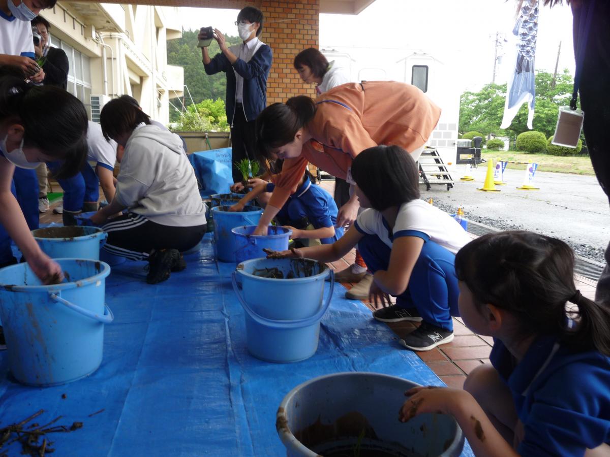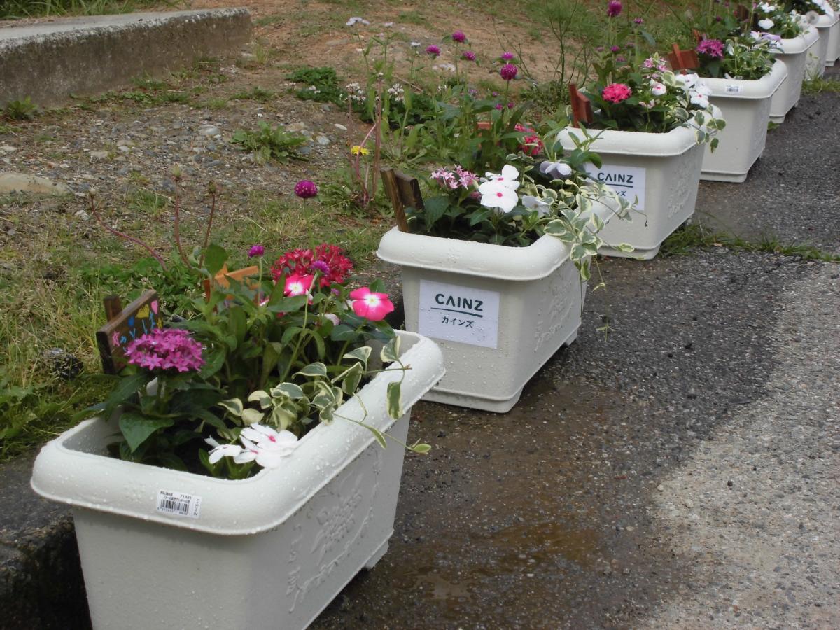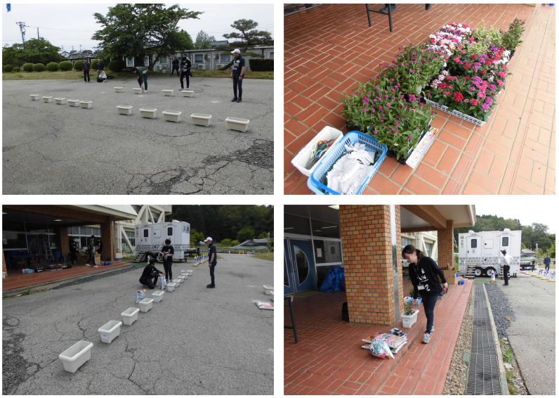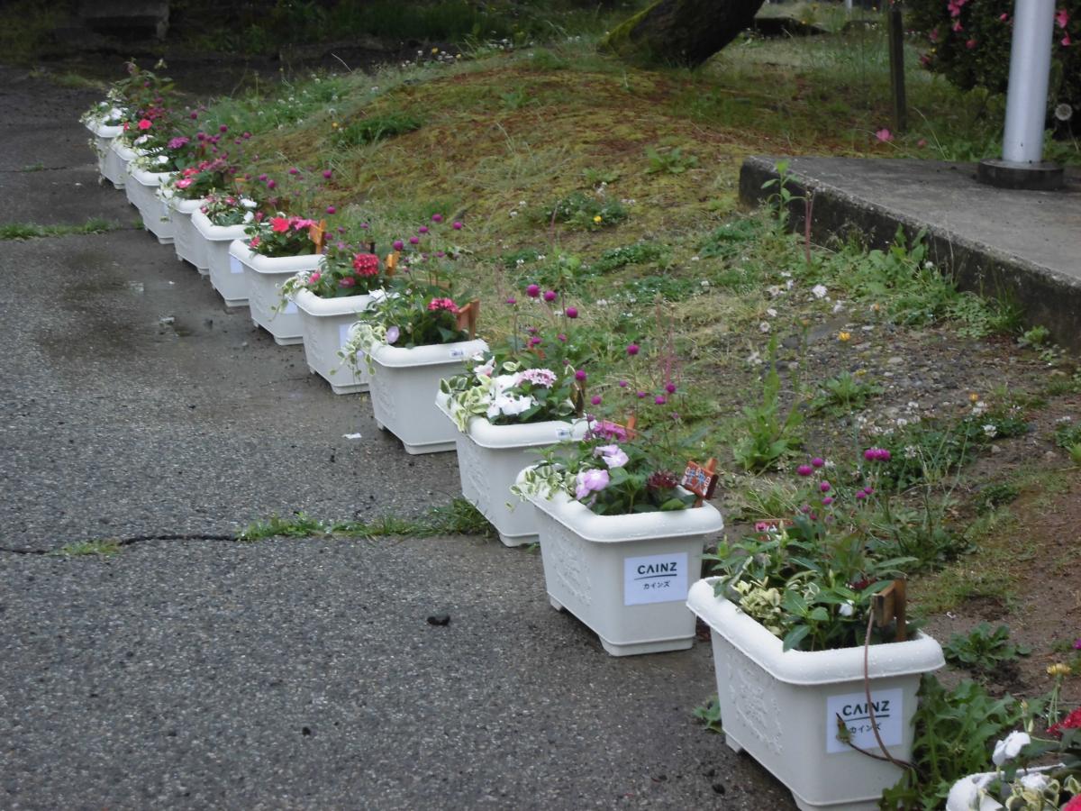 植えたプランターは、校舎と仮設住宅の間に並べて置きました。平日は児童が、土日は仮設住宅等の皆さんが水やり等を行う予定です。一緒に手をかけて一緒にたくさんの花を咲かすことができたらいいなと思います。今回をきっかけに、今後も児童と仮設住宅等にお住いの皆さんが定期的に関わる活動に取り組んでまいります。7月には、仮設住宅集会所で子どもたちが準備したプログラムで関わる活動を計画中です。お楽しみに!