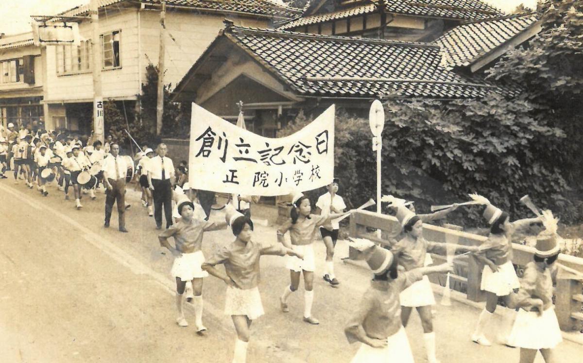 銀鈴とは、銀でできた鈴のこと。実際どのような楽器を使っていたのかは想像することしかできませんが、この時代に県大会で優勝したという素敵な歴史があります。このあたりに本校の鼓笛パレードのルーツがあるのかなと想像しました。いつ頃から本校の鼓笛パレードが行われていたのか写真で調べてみると、昭和40年代の写真が出てきました。約60年前、おそらくそれ以前から行われていたことでしょう。