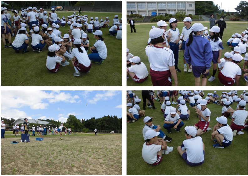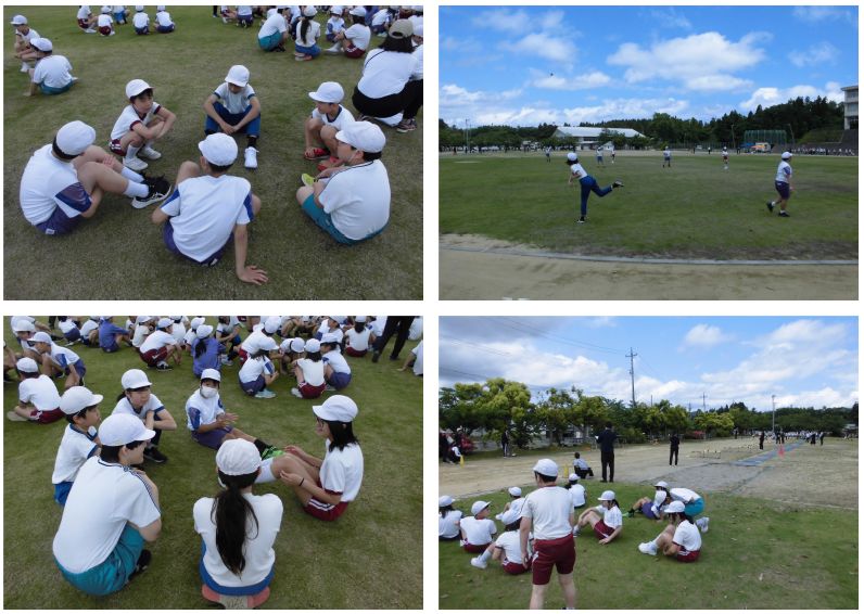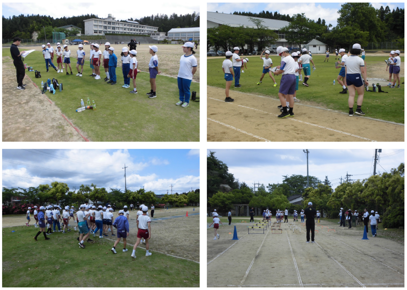 約120名の児童が4つの班に分かれて、記録を計測しました。加えて、交流タイムでミニゲームをしたり、最後にはみんなでつなひきも行いました。みんなが精一杯各種目に挑戦し、他校の児童と交流できた素敵な会となりました。運営していただいた珠洲市体育教育研究部会の皆様、本当にありがとうございました。