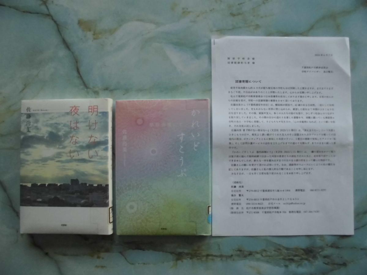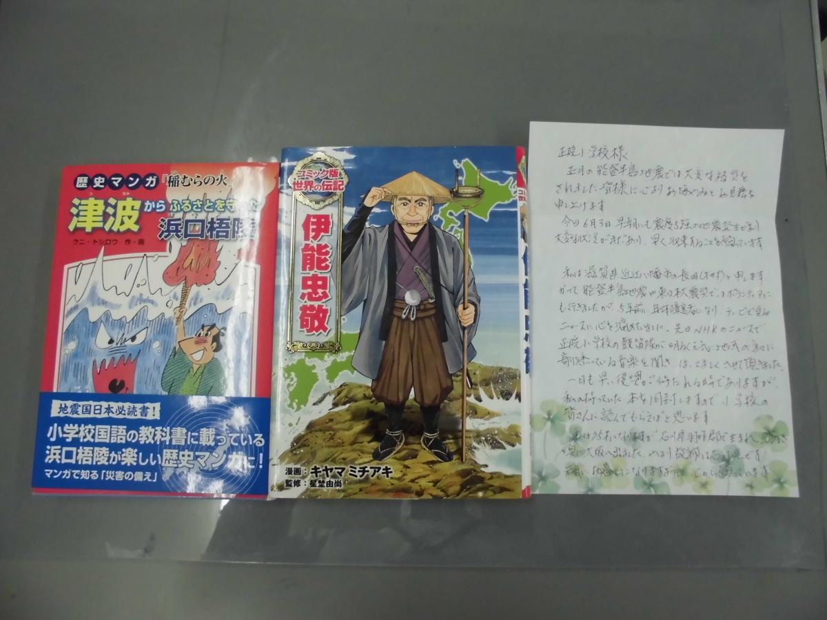 →いただいた本の作者である千葉県・佐藤尚美様から託されてお送りいただいたとのこと。児童に紹介し、早速図書室に並べさせていただきました。早速校長から読みたいと思います。