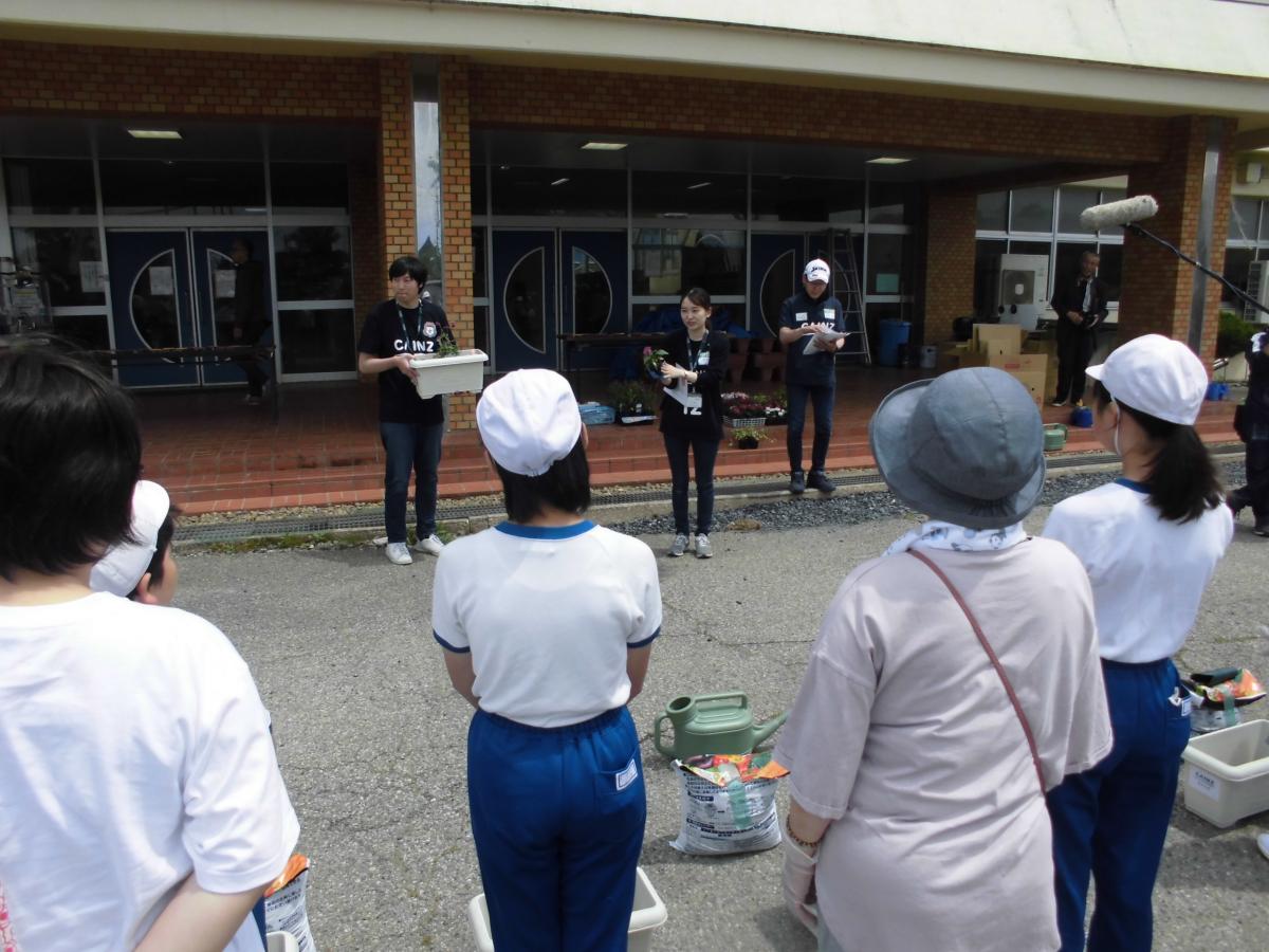植え方をご指導いただきながら、子どもたちは楽しんで参加していました。ぜひ、学校周辺にも今後花苗を植えてきたいと考えています!