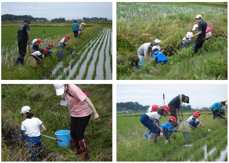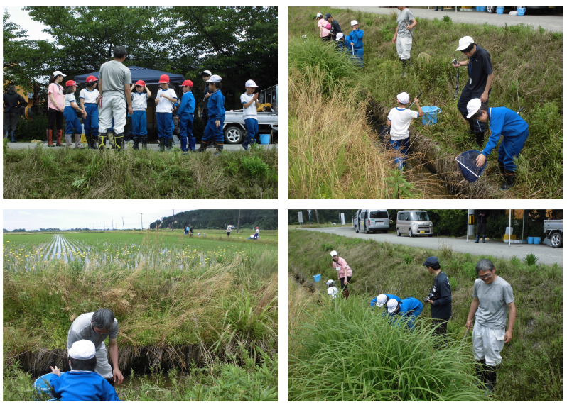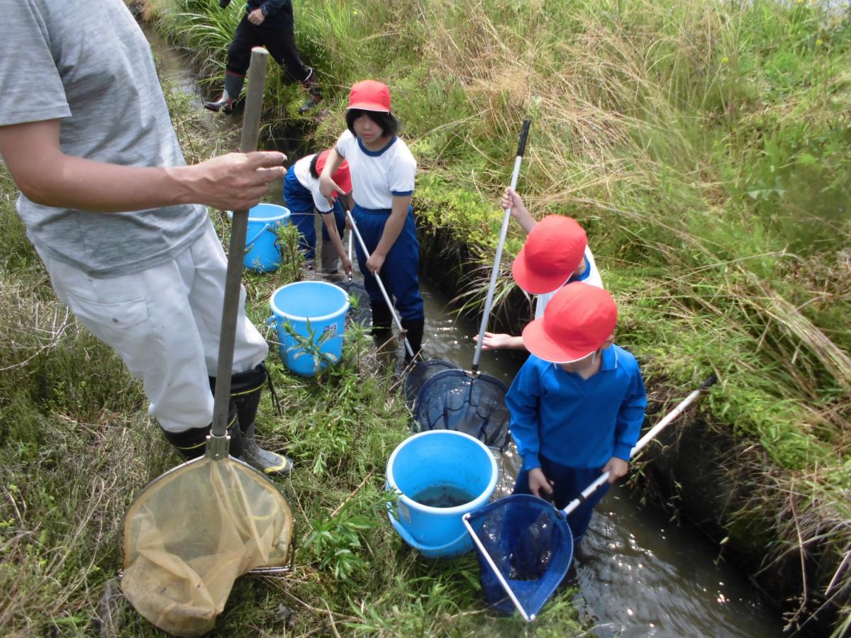 子どもたちは2班に分かれ、初夏の田んぼや用水に生きるいろいろな生き物たちをみつけ、収集し観察していました。ドジョウやおたまじゃくし、ヤゴやゲンゴロウなど十数種類の生き物をみつけました。特に用水にはドブガイ(田貝)も多く見られました。身近な自然に住むいろいろな生き物を見つけることができ、子どもたちの学びは多かったようです!よい学びの機会をいただき、お世話いただいた皆様、本当にありがとうございました!