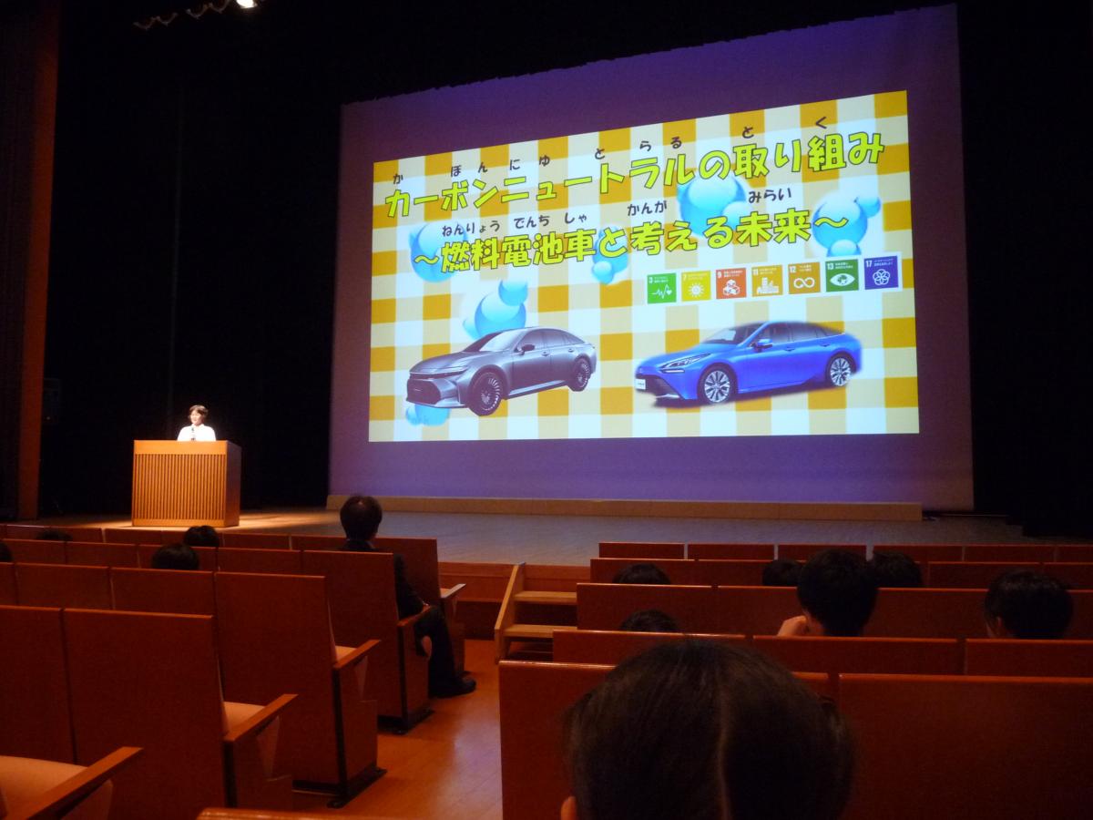 子どもたちは、未来の自動車をイメージしながら目を輝かせて話に聞き入っていました。トヨタ自動車様、素敵なお話をありがとうございました。