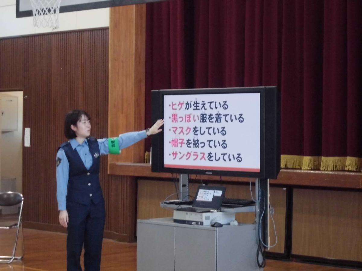 2限目は、珠洲警察署から2名ご来校いただき、防犯教室(不審者対応)を行いました。前半は、職員の研修・不審者が来校したときの手順や対応等についてみんなで学ぶことができました。今週から、本校では地震前と同様に、児童が登校してから下校するまで、玄関は施錠し、お客様には呼び出しボタンで職員が対応しています。《不審者は学校に入れない》対応で、今後も取り組んでいきます。