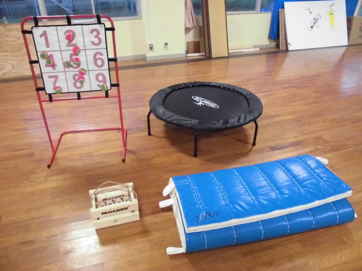 ④匿名の方より…ミニトランポリン、ストラックアウト、モルック、運動マット