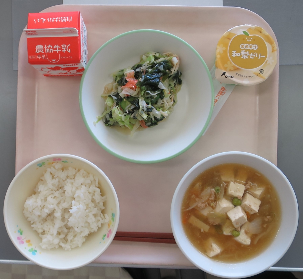 梨ゼリー、牛乳~