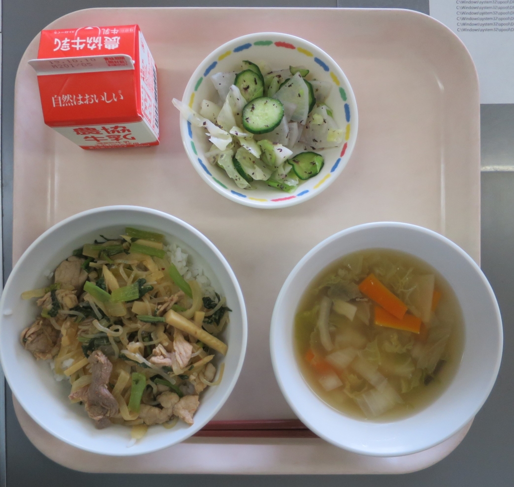 チンゲン菜のスープ、牛乳~