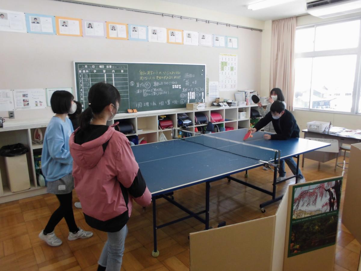 今日から久しぶりに登校した5年生は、朝から教室で卓球で盛り上がっていました。