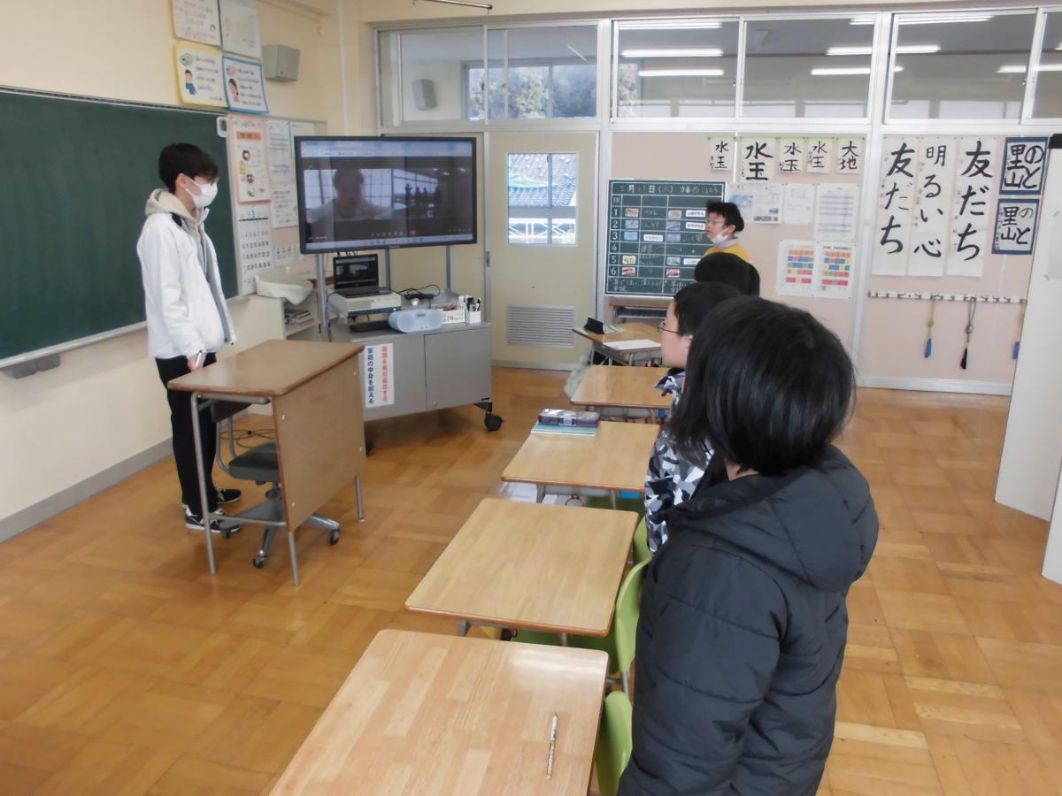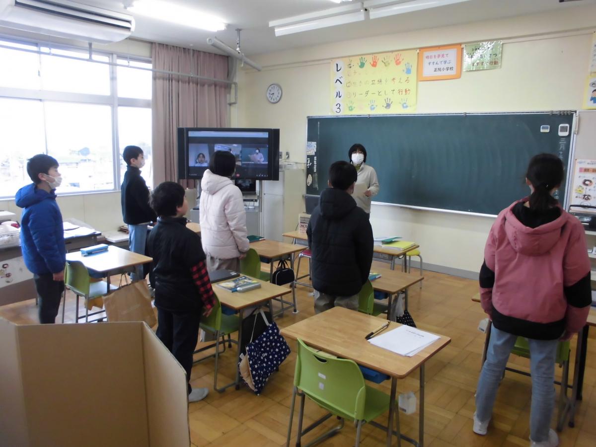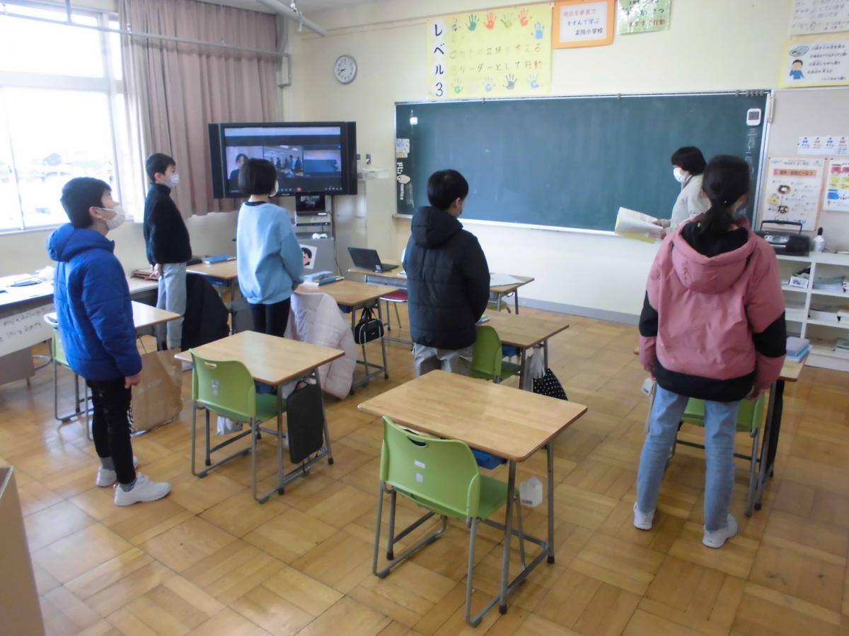委員会紹介の後は、学校に届いた応援メッセージの視聴です。今回は、岡山県の井原市立大江小学校6年生から届いたミュージカルでのメッセージでした。石川県の小中学校に送ってくれたもので、よく練習された約5分の素敵なミュージカル風メッセージでした。子ども達の感想を含めたお礼状をお届けする予定です。