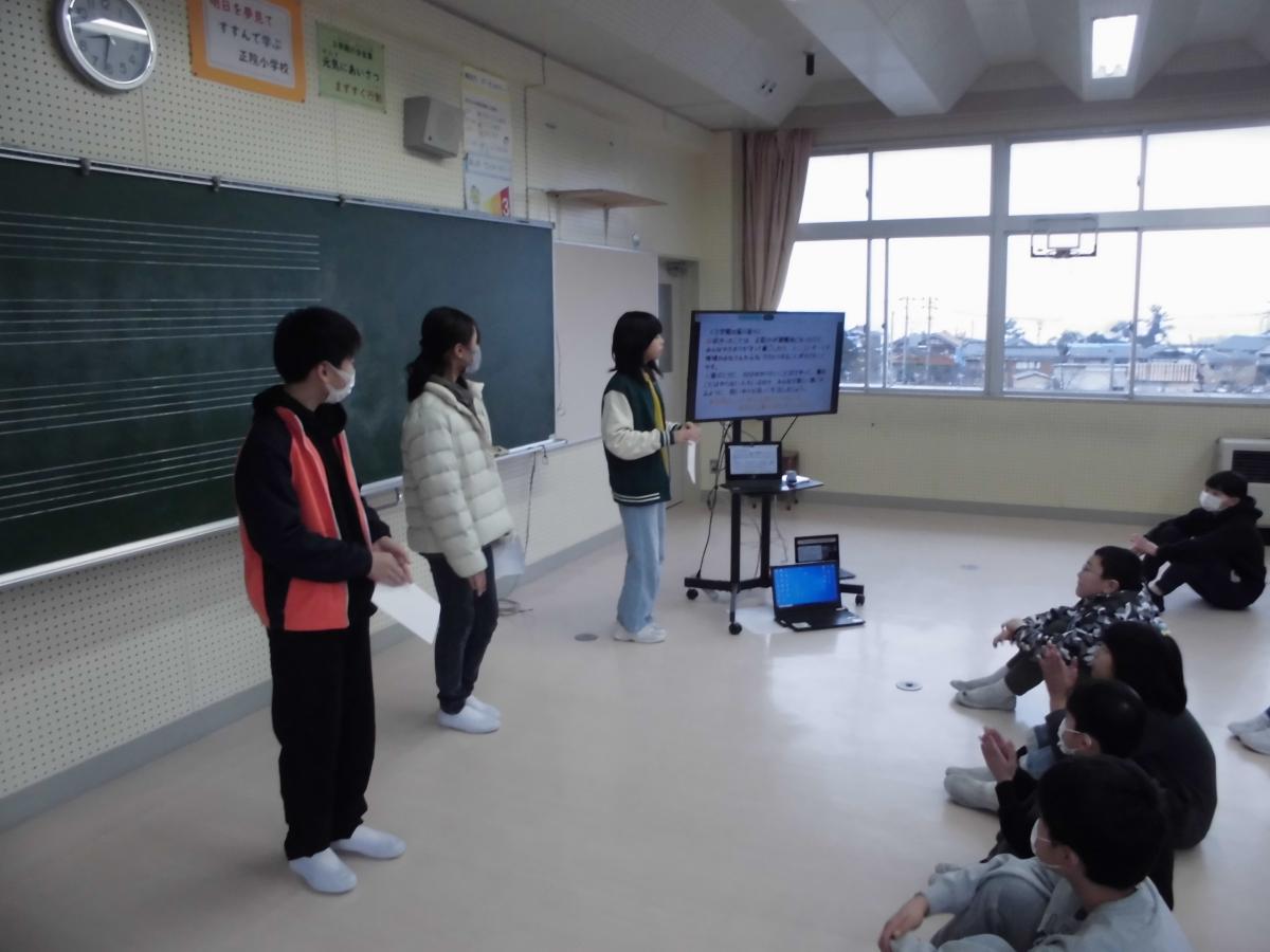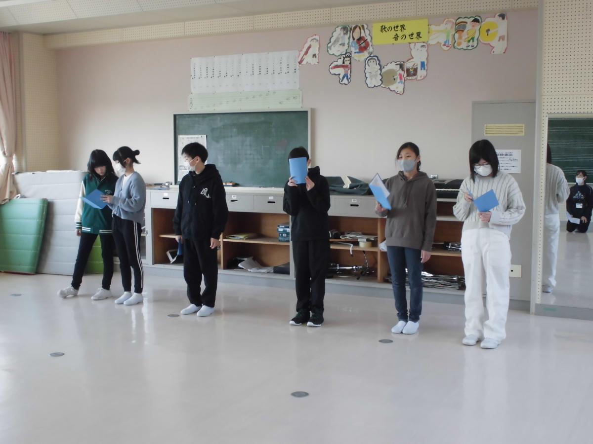 朝の教室をのぞくと、卒業式に向けて歌の練習です。歌詞もすっかり頭に入ったようで、少ない人数ながらすてきな歌を聴くことができました。