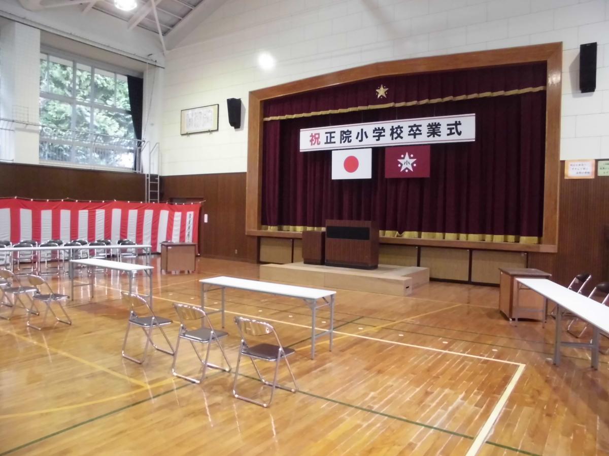 体育館はもう卒業式準備がすすんでいます。いつもより狭いスペースではありますが、ほぼいつもどおりの卒業式を行える準備は揃ってきています。あとは練習を積んで、6年生のための素敵な卒業式にしたいと考えています。さあ1回1回の練習がんばるぞ!!