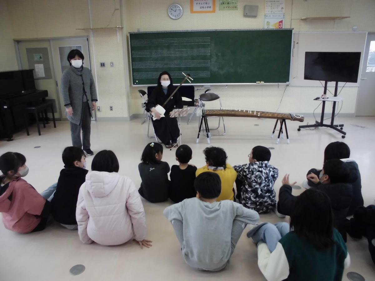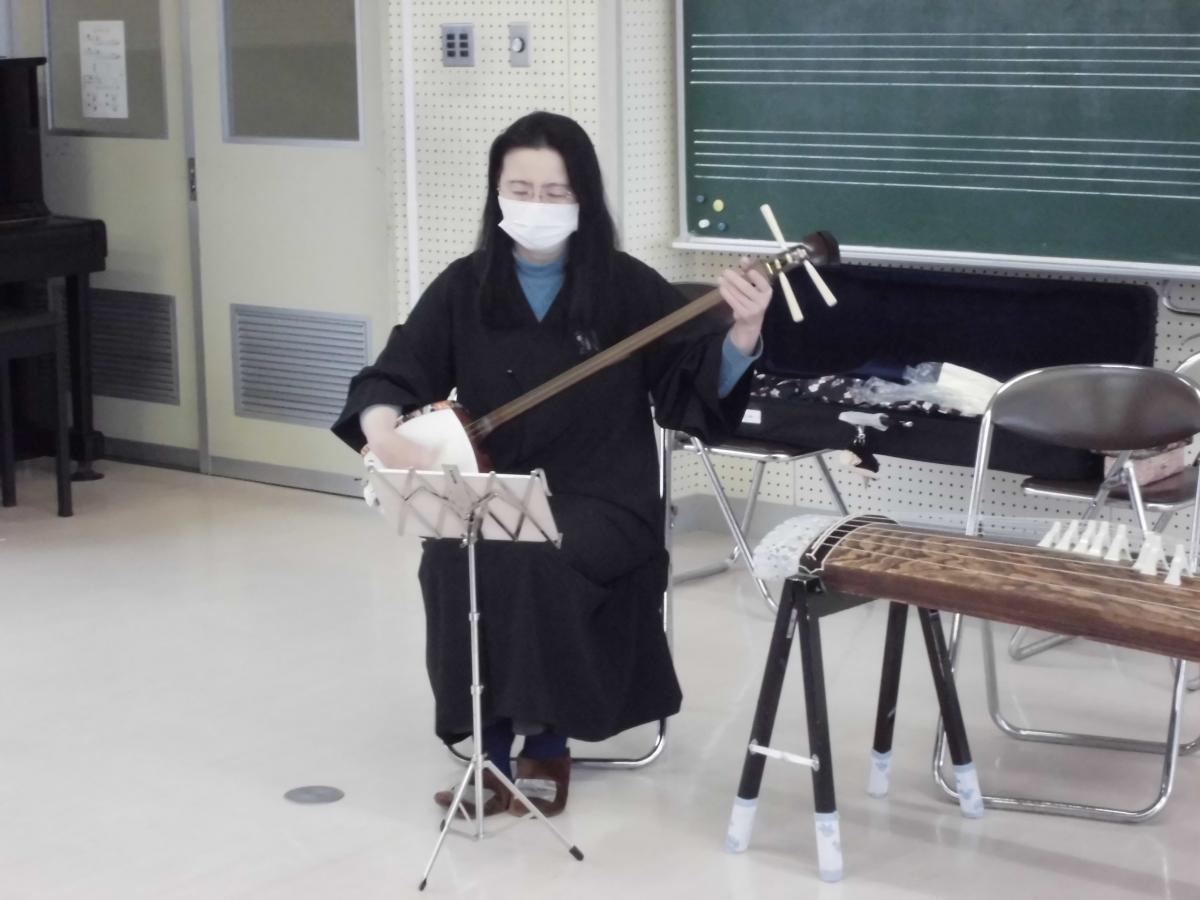12日(火)の昼休み、現在本校の避難所の応援においでている日本防災士会長野県支部の飯沼範子さん(芸名:清水範子さん)が、三味線とお琴を使って約20分間のミニコンサートを開いて下さいました。《世界に一つだけの花》など、子ども達が知っている曲を中心に、日本の学期である三味線とお琴の魅力を子ども達に伝えてくれた時間でした。地震後いろいろな方のご支援で、今までできなかった活動にも取り組めている事、本当にありがたい限りです。