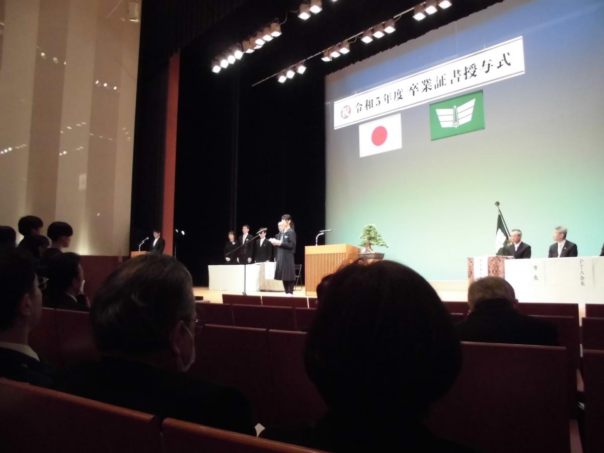 また、本校卒業生で緑丘中2年の西さんが在校生を代表し送辞を述べていました。堂々とした姿が印象的でした。緑丘中同様、本校も素敵な卒業式で、6年生を送り出してあげたい、その思いを強くした時間でもありました。