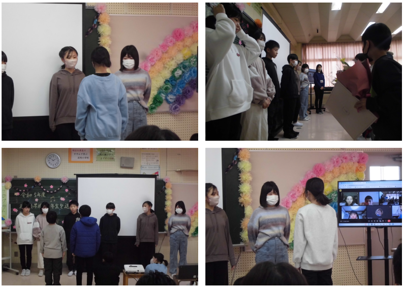 最後に5年生が終わりの言葉を話して、この会は終わりました。この状況の中、いつも以上に素敵な送る会にできたのではないかと思います。保護者からも、こんな立派な会になるとは思っていなかったとの言葉もいただきました。6年生は卒業まであと登校するのは15日、一日一日を大切に、6年生との時間を過ごしてほしいと思います。
