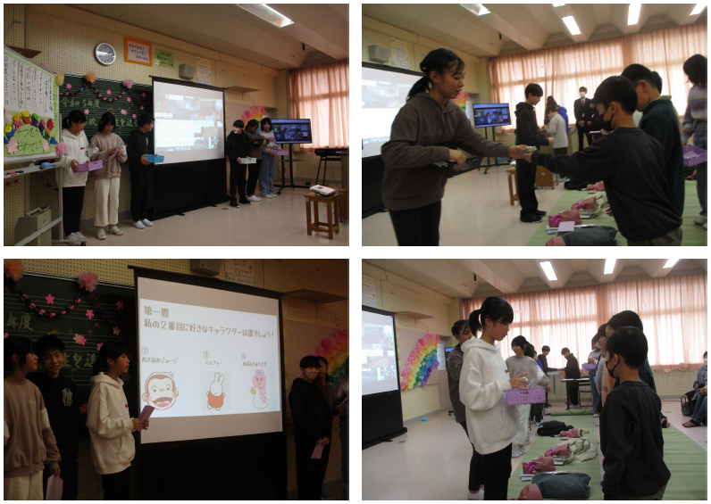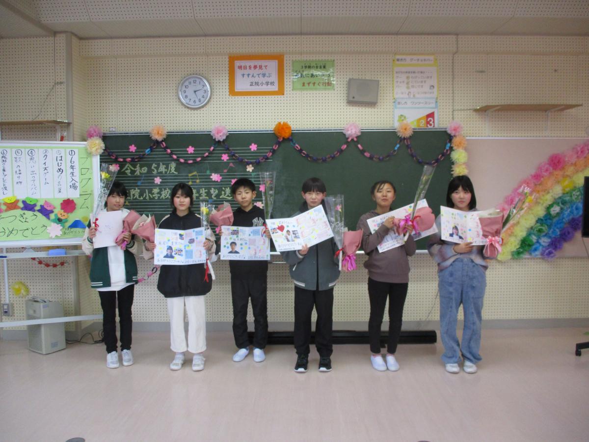 5年生のはじめの言葉で始まり、次は5年生が考えた「6年生にまつわるクイズ」でした。内容を工夫し一考しないと答えられないものが多かったように思いました。皆さんすすんで挙手して参加して下さいました。次は5年生がつくった「6年生の思い出アルバム」です。6年生の小学校生活6年間を写真で振り返る内容でした。素敵な写真でこの6年間を振り返ることができたと思います。見ていた6年生もみんな笑顔でした。