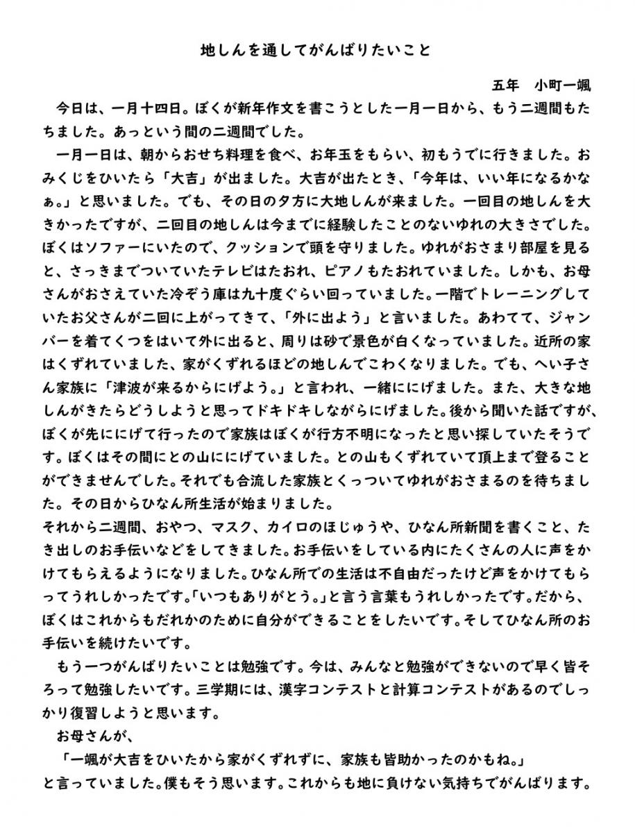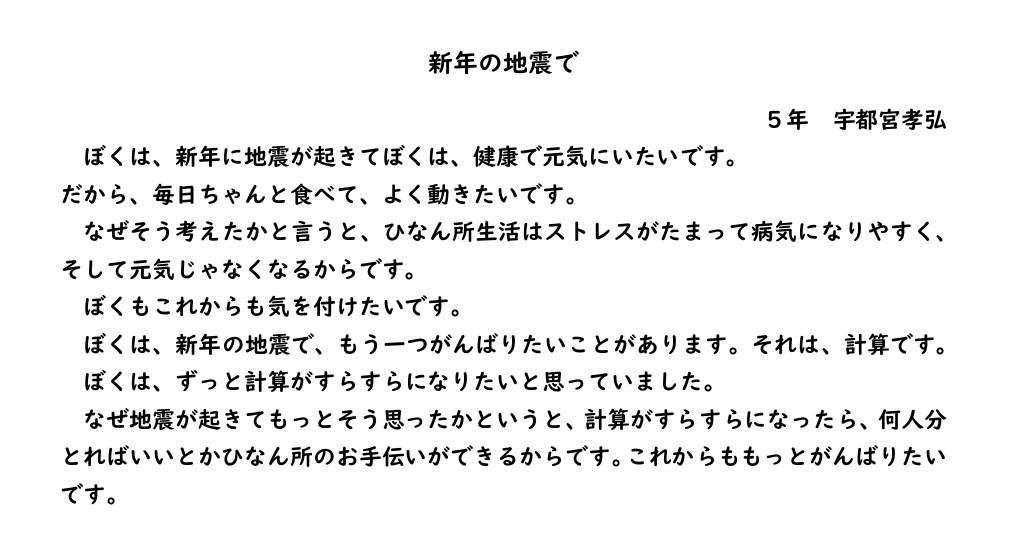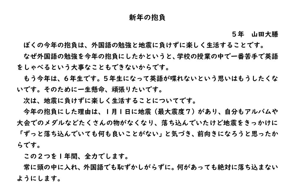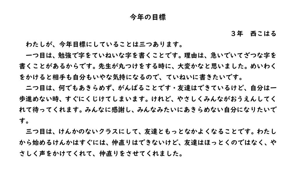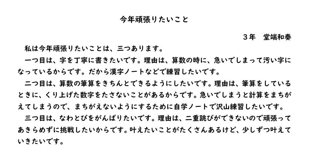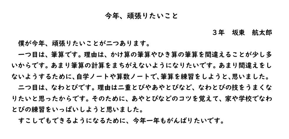 登校する児童が書いた新年作文を紹介します!今回は3名分です。ご一読ください。