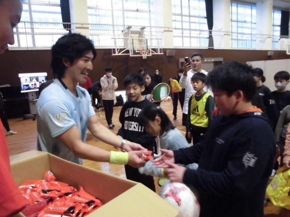 最後には、皆さんから児童にサッカーボールとスポーツ用カステラのプレゼントが。これも嬉しい贈り物ですね。