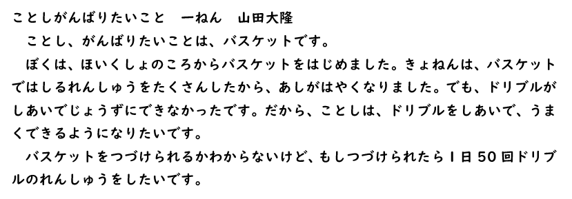 登校する児童が書いた新年作文を紹介します!今回は2名分です。ご一読ください。