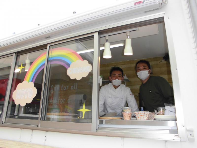 きのこ汁、唐揚げ、サラダは、古民家レストラン 典座の坂本さんの炊出しをいただきました。久しぶりの唐揚げは、子どもたちに大好評でした。なめこたっぷりのきのこ汁も温かくておいしかったです。ありがとうございました。