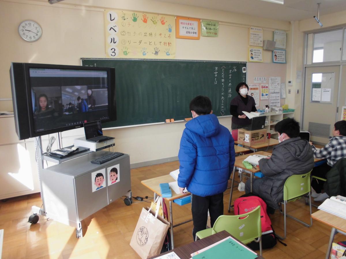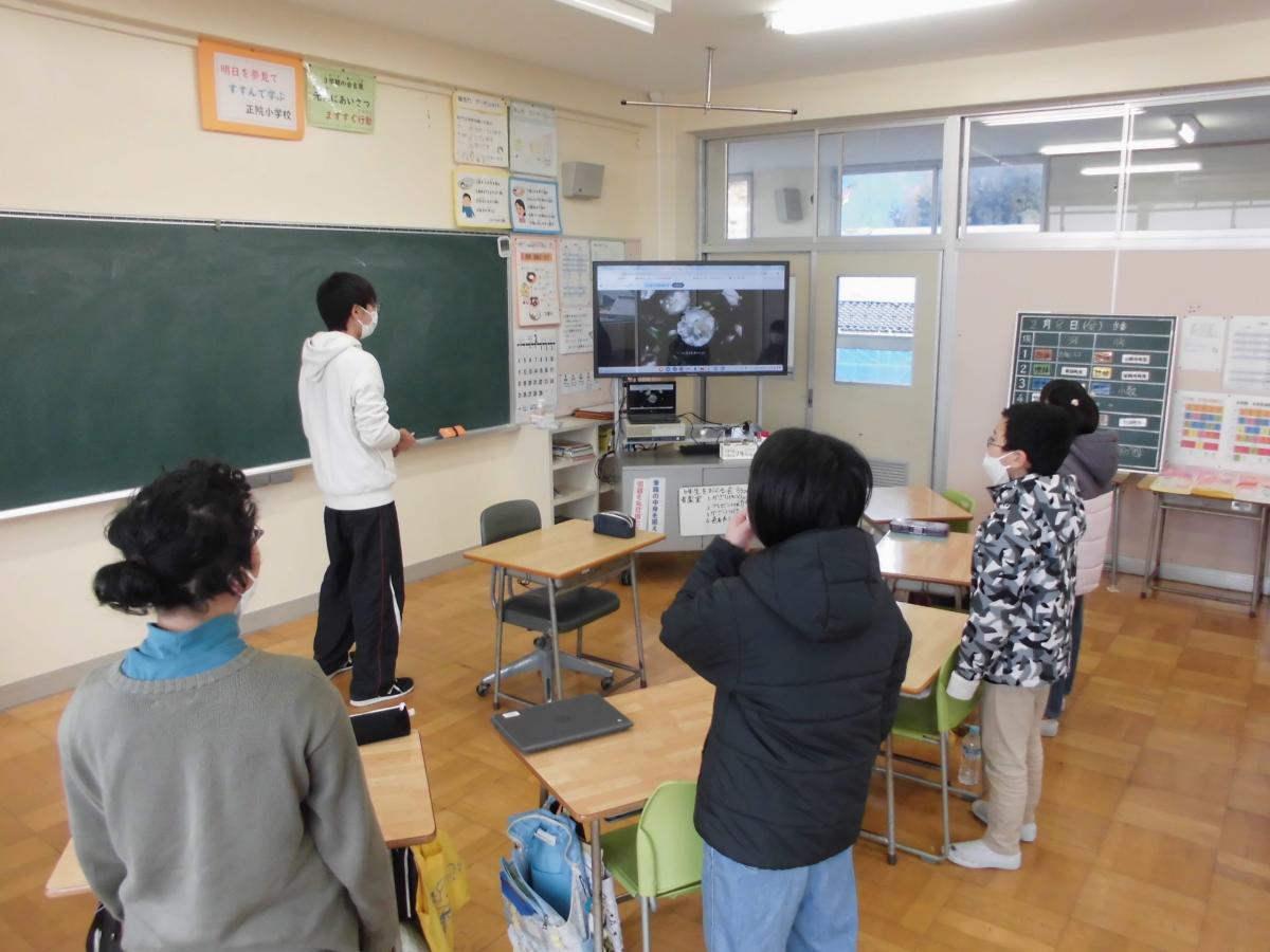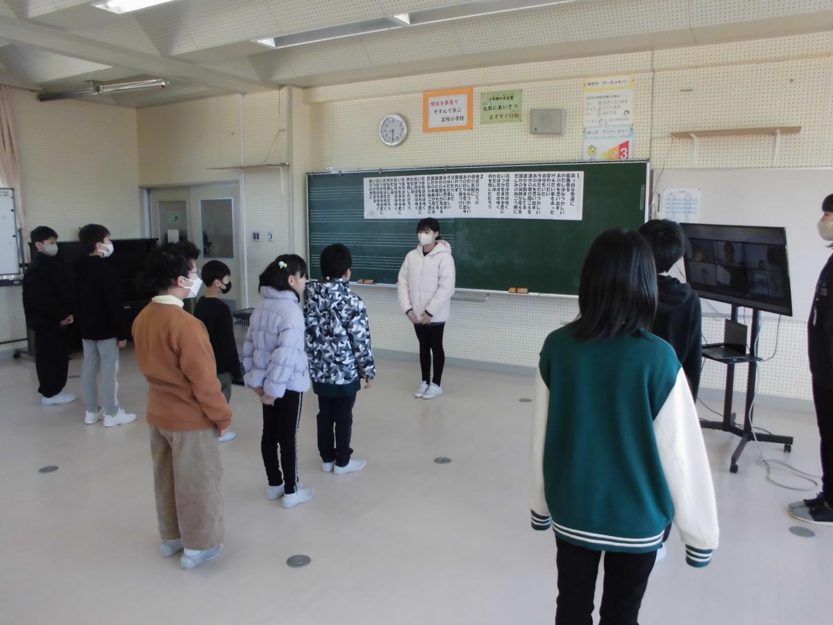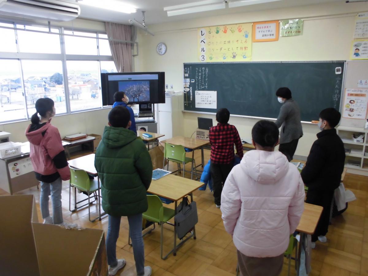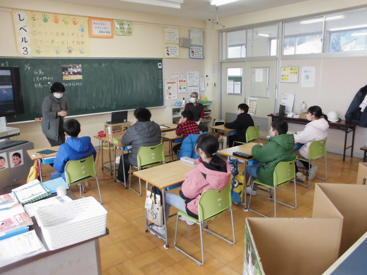 9日(金)の5限目、5年生は総合の時間に正院町区長会長・濱木さんをお招きしての学習会を行いました。5年生は総合の1つのテーマに「ハクチョウがやってくる町」と題して、ハクチョウを観察したり、エサやり体験をしたりという活動に取り組んでいます。12月に一度、ハクチョウのお世話をしている殿山会の皆さんにご来校いただき、餌やり体験等の活動をし、3学期にもぜひといった計画をしていました。その時の集合写真がこちらです。
