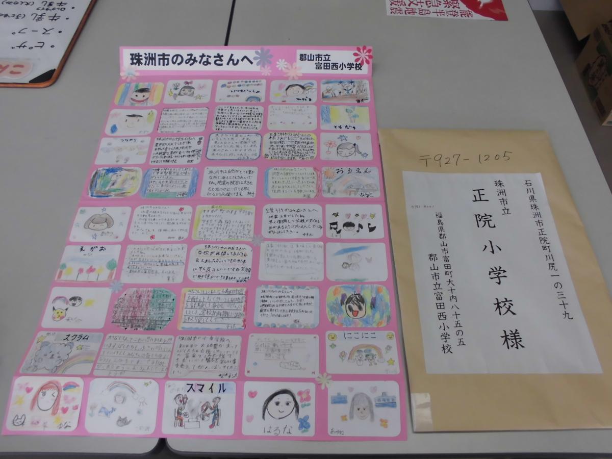 また、いろいろなところから応援メッセージが届いています。皆さんのメッセージを励ましを受け止め、これから少しずつ前に進んでいきます。以下、メッセージをいただいた学校をご紹介します。