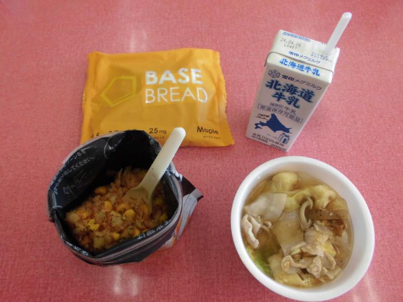 チキンライス、豚汁、パン(メープル味)、牛乳でした。
