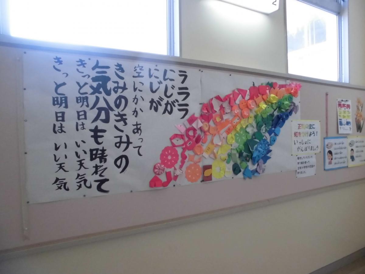 今日の児童集会は、ミニコンサートの歌の練習です。何度も練習している歌ですが、歌うたびに歌詞の意味が飛び込んできて、しっかり歌おうという気持ちにさせてくれます。合唱担当からは、花ってどんな花を連想するか?たんぽぽのように、足からしっかり根を生やして歌いましょうとの指導が。児童と同じ気持ちで歌うと、朝からとってもすてきな気分になれました。ミニコンサートは、2月28日(水)に行うこととしました。避難者の皆さんに、笑顔と元気が届けられるように、あと2週間の練習に取り組みます。