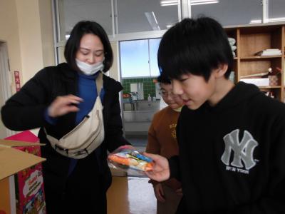 バレンタインデーということで、児童のご家族の小町史華さんとそのご友人の方々からお菓子の詰め合わせを、他校で学習中の1年生、西本瑠璃ちゃんからチョコレートをいただきました。遠くから正院小学校に心を寄せていただいて嬉しいです。ありがとうございました。