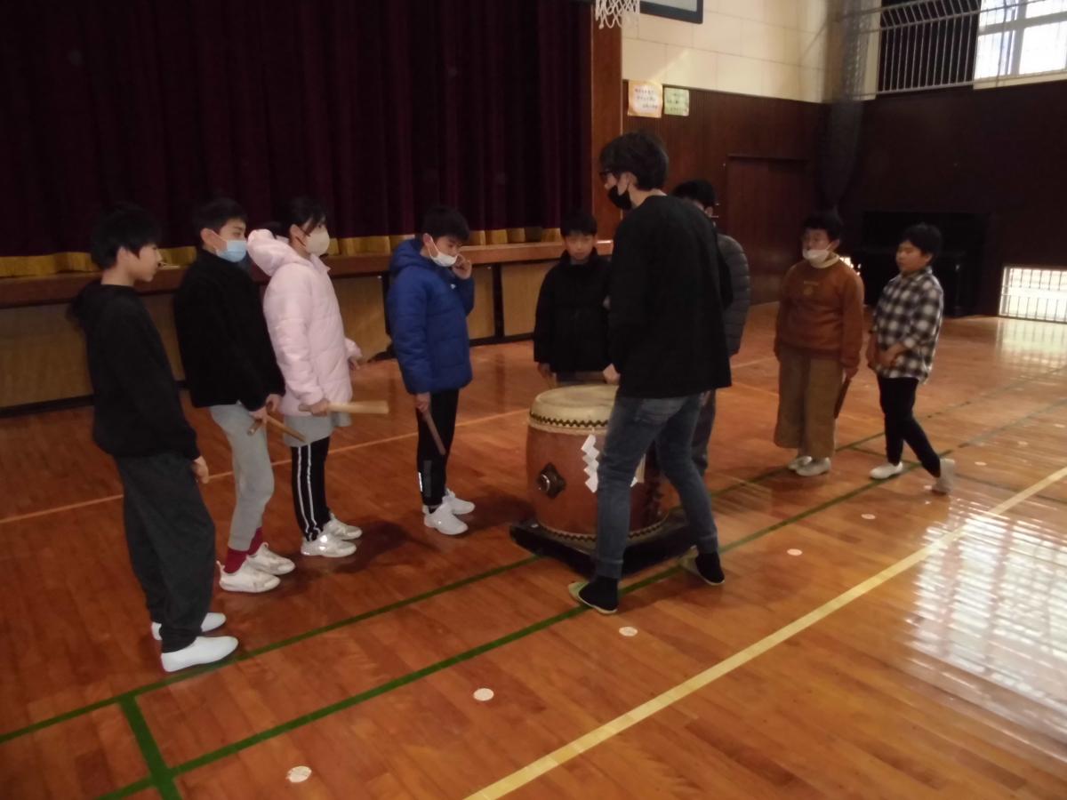 14日(水)の6限はクラブでした。例年11月までのクラブでは八幡太鼓や龍笛の練習に取り組んでいますが、この状況で地域の皆さんへ元気と笑顔を届けるために、復活です。講師のお二人からも快諾いただき、その1回目の練習日となりました。登校児童が半分となったので、メンバーは減りましたが、そのメンバーで依然と同じような披露ができるよう、講師の方を中心に懸命に練習に取り組む姿が見られました。その太鼓や笛の音を聞いて、練習していた体育館においでた方もいて、練習する様子を笑顔で参観していただきました。本当にありがたいことです。