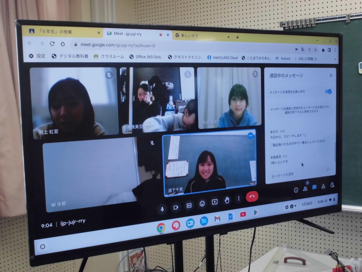 いつものように朝の会を見に行くと、今朝はみんな9時からの朝の会に参加していました。学校再開当初は、起きた時刻が8時を回っている児童が多かったようですが、今は7時台に目を覚ましているようです。6年生では、今日からいつものスピーチが再開。最近食べておいしかったものを当番の児童が話していました。「クレープ」が美味しかったとのこと。今、食欲を満たすことは生活の大切なことの中の1つだと感じました。1年教室は1対1でのオンライン朝の会なので、担任は本を手に取り読み聞かせをしていました。みんなそれぞれ学びへの関心を高める工夫をしているなと感じました。