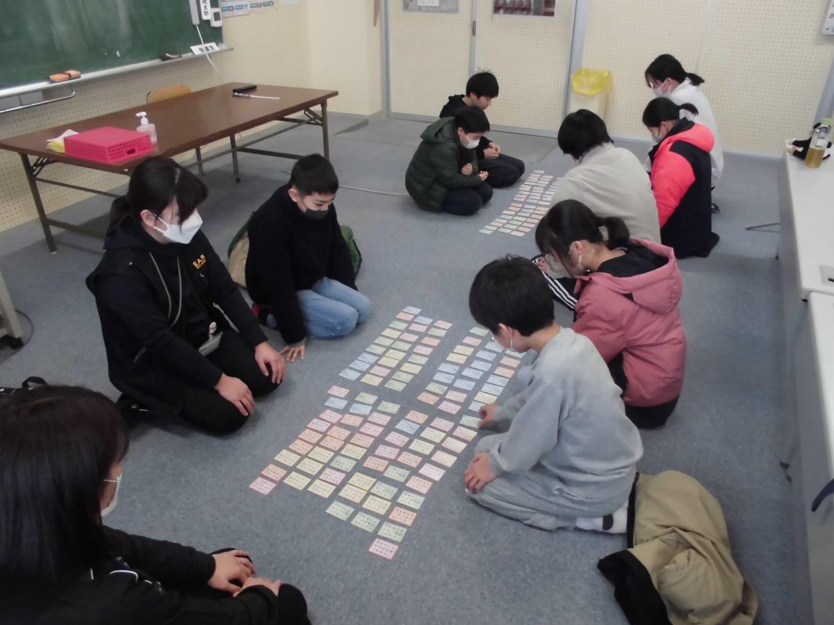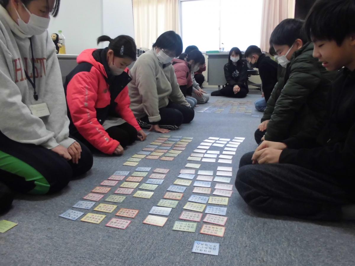 24日(水)の昼食のあとは、みんなで百人一首に取り組みました。本来ならすでに終わっている校内百人一首大会。せっかく覚えたんだからみんなでやってみようということになりました。