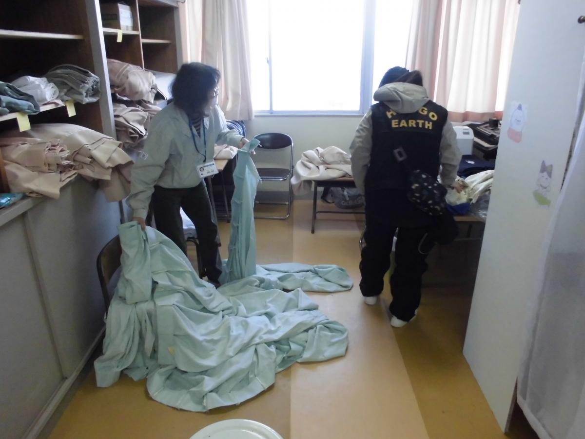 先週は丹波市立大路小の上田洋輔さん、今週は洲本市立洲本第二小の秋山さん、と現役の学校の先生方が本校の支援においでてくれています。今日から本校においでた秋山さんには、避難者が避難時に寒さ故はずしてしまった各教室のカーテンの修復業務をお願いしました。先週の上田さんにもお願いしていた業務で、今日でほぼ3階学校生活エリアのカーテンは現状復帰できました。アースの皆さん、ありがたい・力強いサポート本当にありがとうございます。