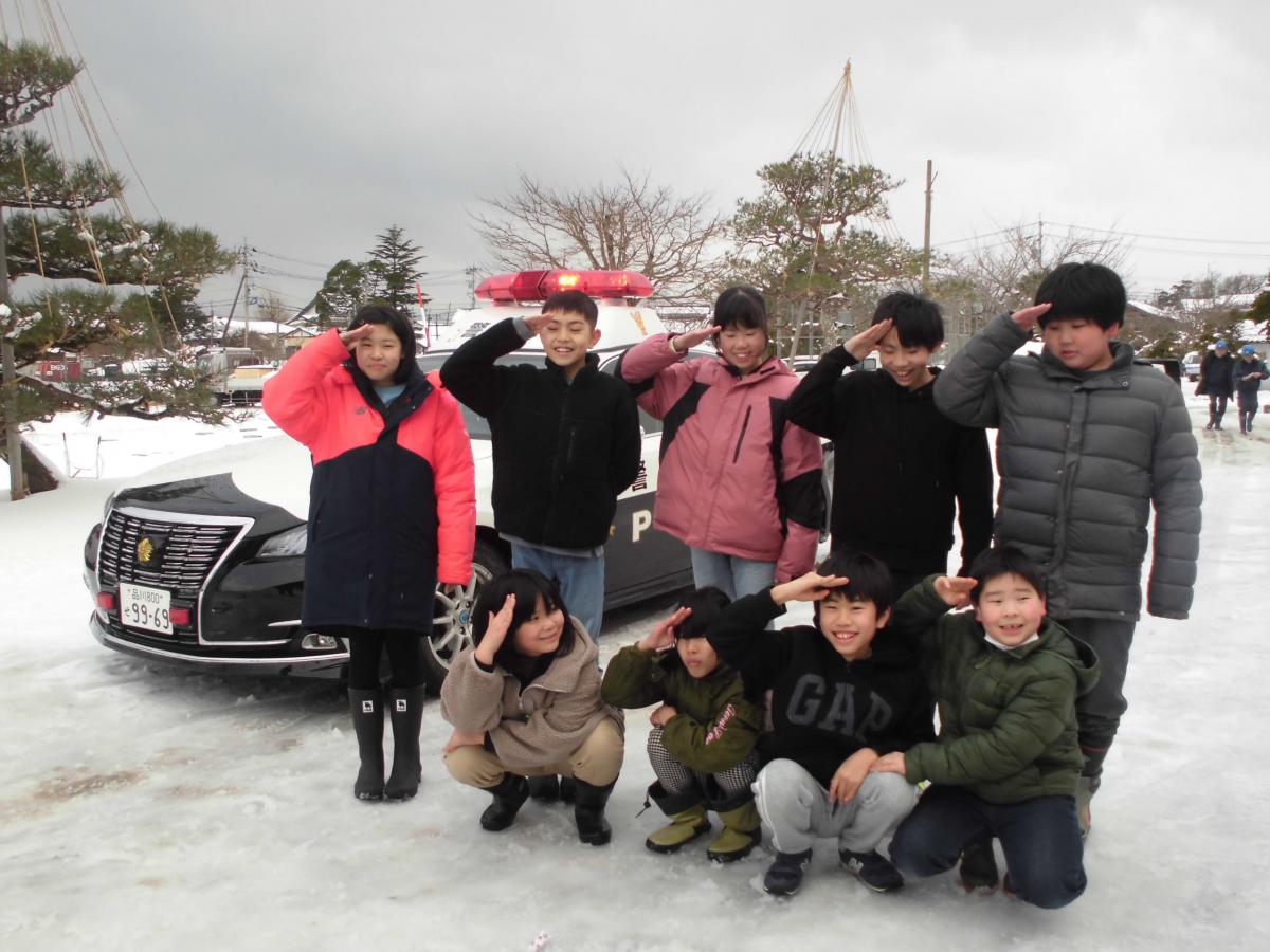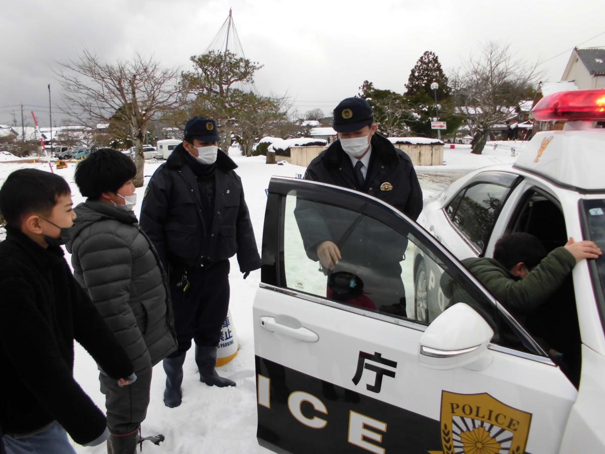 地域を見回りにおいでた警察の方が、子どもたちに特別にパトカー内を見学させて下さいました。子どもたちは興味深そうに見入っていました。