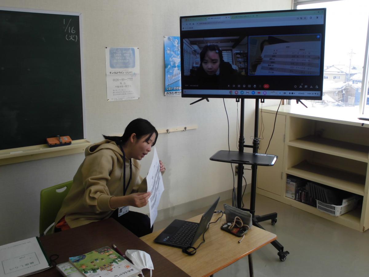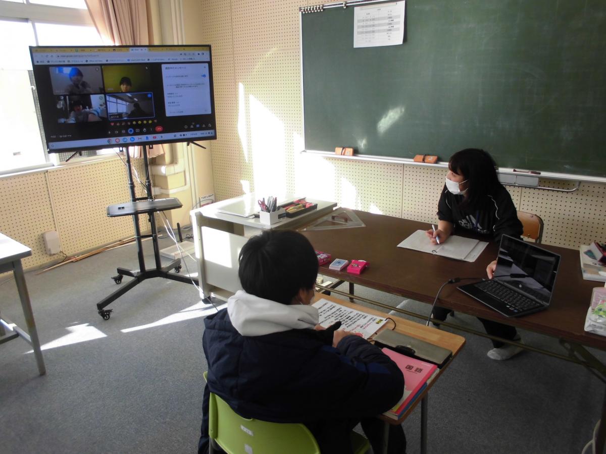 22日、昼食を終えた児童はお迎えが来て下校する子と、そのまま学校で過ごす子に分かれます。今日はそのまま学校で過ごすことスクールカウンセラーがオンラインでつながり、子どもたちの正直な思いを聴く時間を作りました。子どもたちは今やってみたことをいろいろ話してくれました。どうやら体を思いっきり動かしてみたいんだなぁと感じました。大きなスクリーンで映画も見たいんだなぁと感じました。