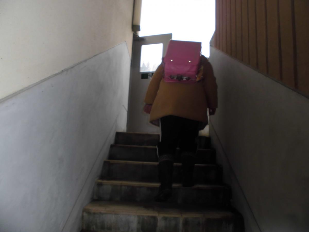 23日朝、3Fの学校エリアを確認し暖房を入れるために階段をあがると、まぶしい朝の光!今日は太陽が子どもたちに元気を与えてくれているようです。グラウンドには着々と準備がすすむ仮設住宅。1月中の完成も間近なようです。