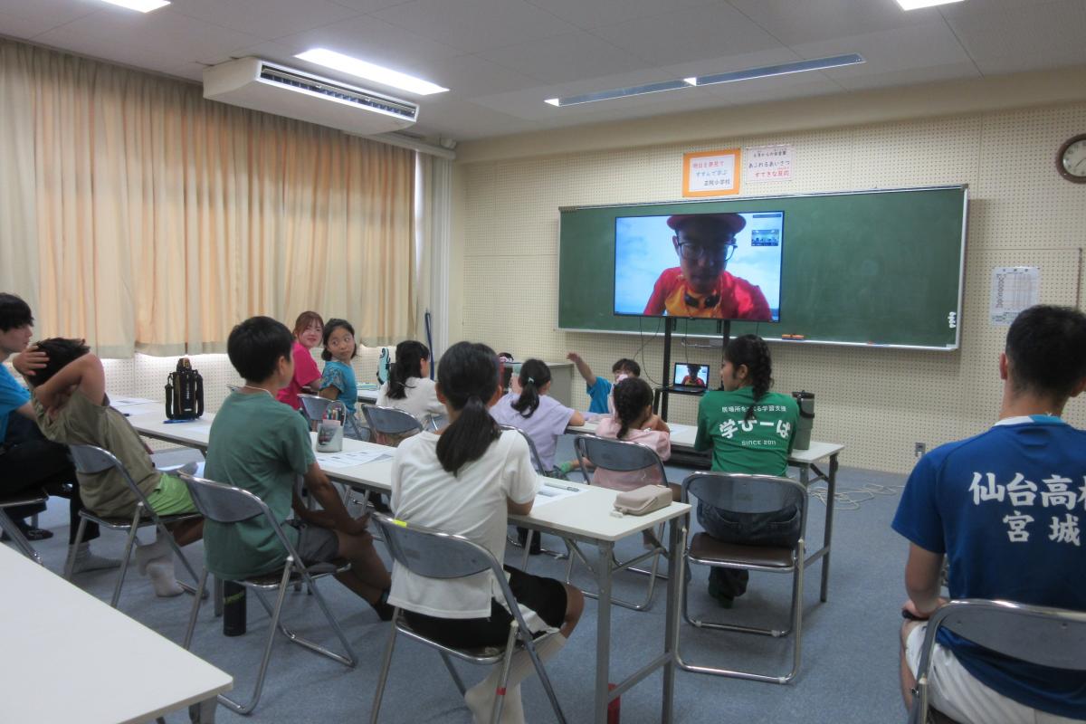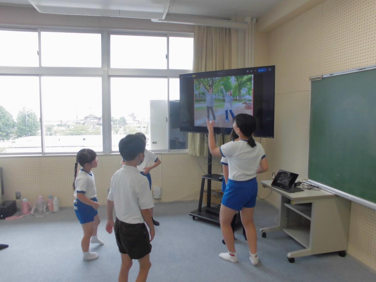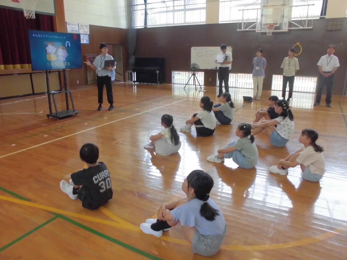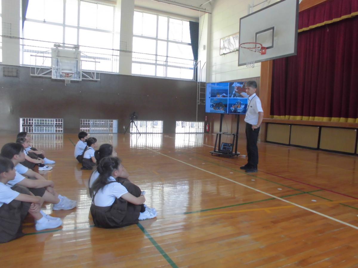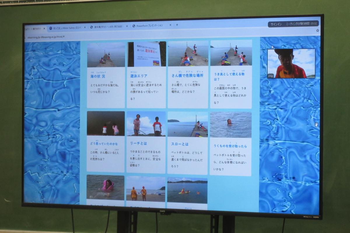 午後は「うんどう」から。一輪車にのったり、かわりおにごっこをしたりして楽しみました。次は、以前本校に来て下さった宮井さんがオンラインで「水辺の安全」についてお話をして下さいました。海での危険なことについてみんなで考えていました。