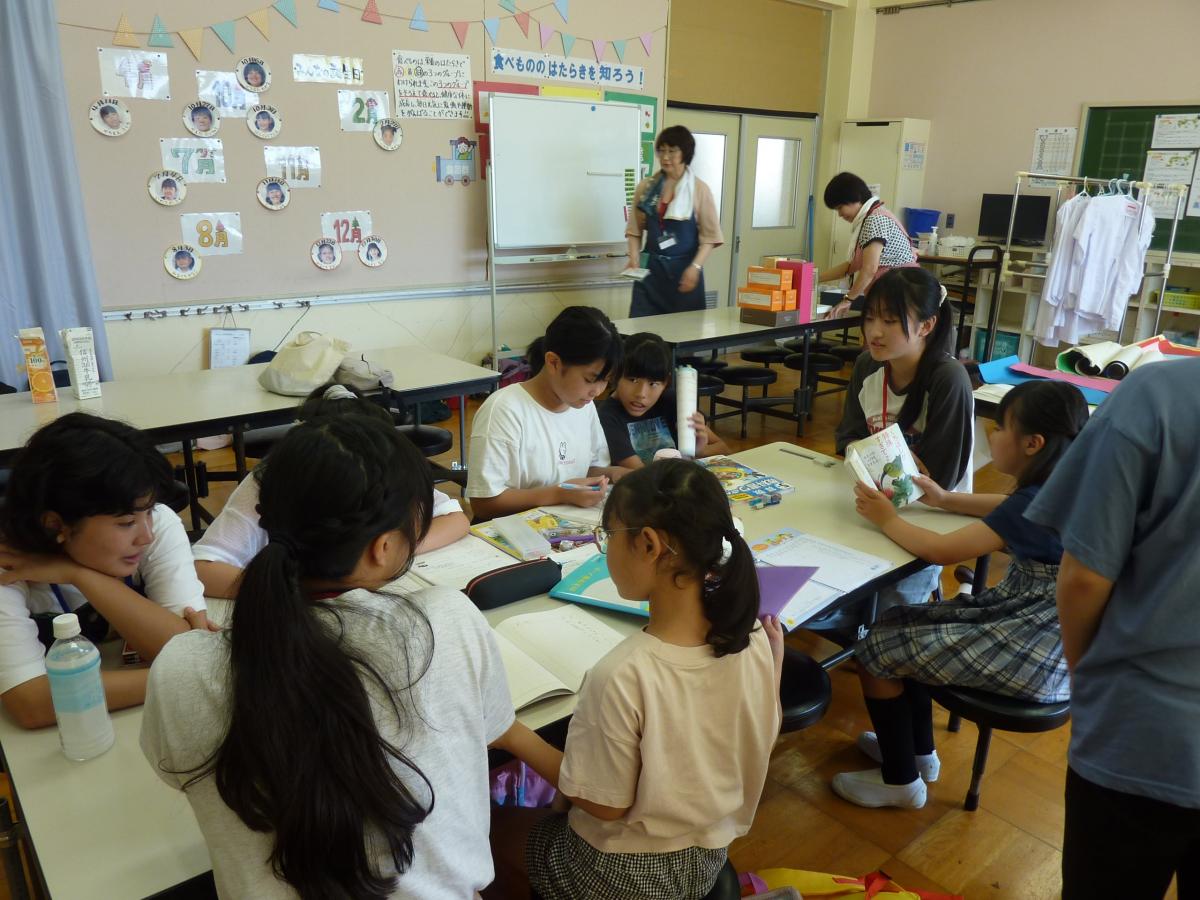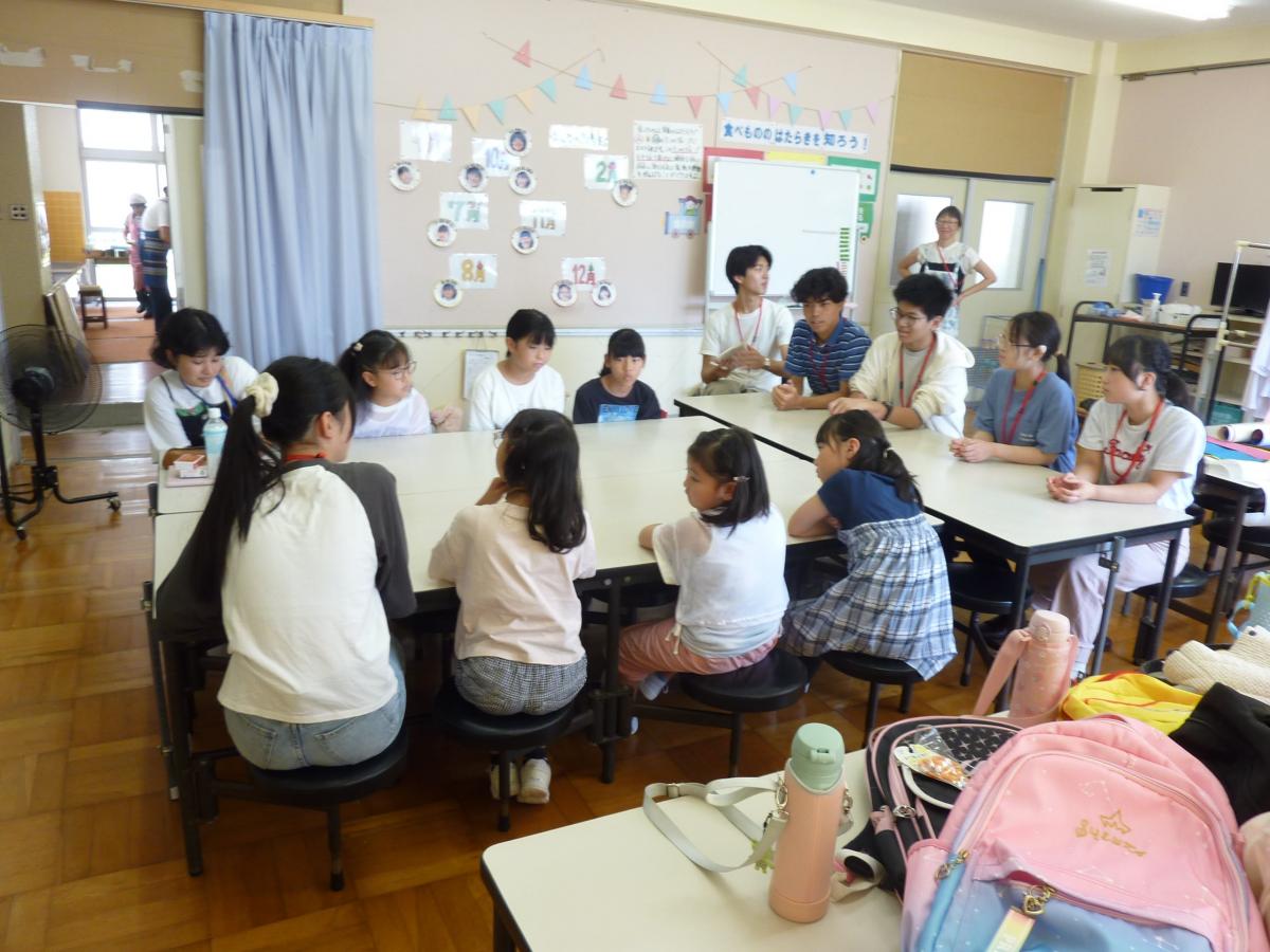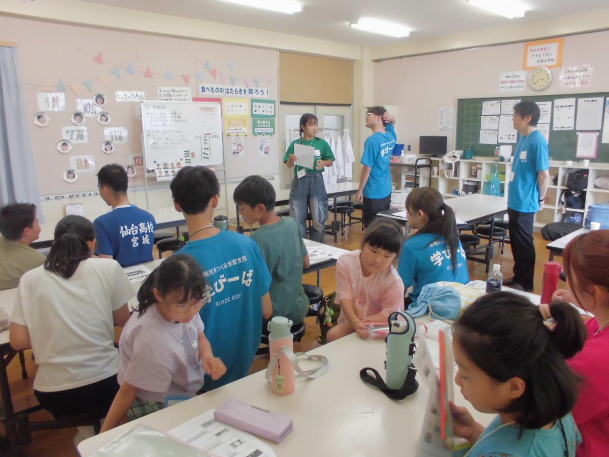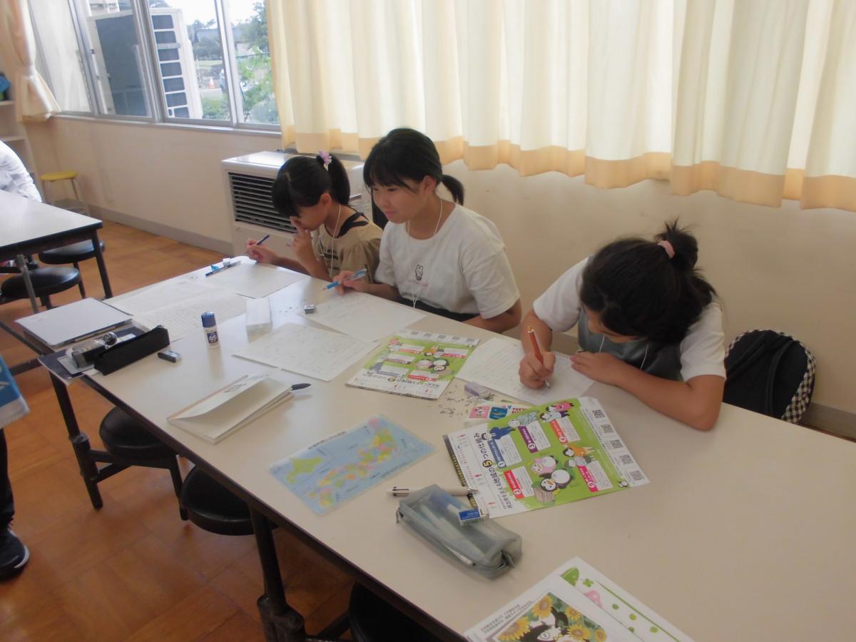 午後は、部活が終わった中学生も参加してくれました。地球市民学習さんへのお手紙を書き、明日の流しそうめんの準備を行いました。一方で、5年生は学びーばさんにアドバイスをいただきながら、夏休みの宿題の1つである作文にも取り組みました。