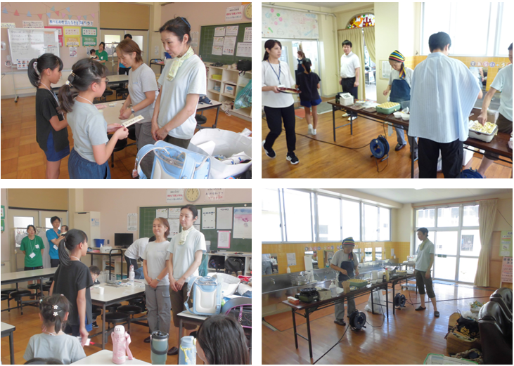 並行して、昨年1月の発災以降、定期的に珠洲においでてボランティア活動をされ、その際本校の子どもたちのためにお菓子やジュースを下さっている大阪府の堀内様が、お仲間である岐阜県の松本様と一緒にご来校下さり、子どもたちや職員、学びーばの皆さんに、たこ焼きと肉吸いをふるまって下さいました。