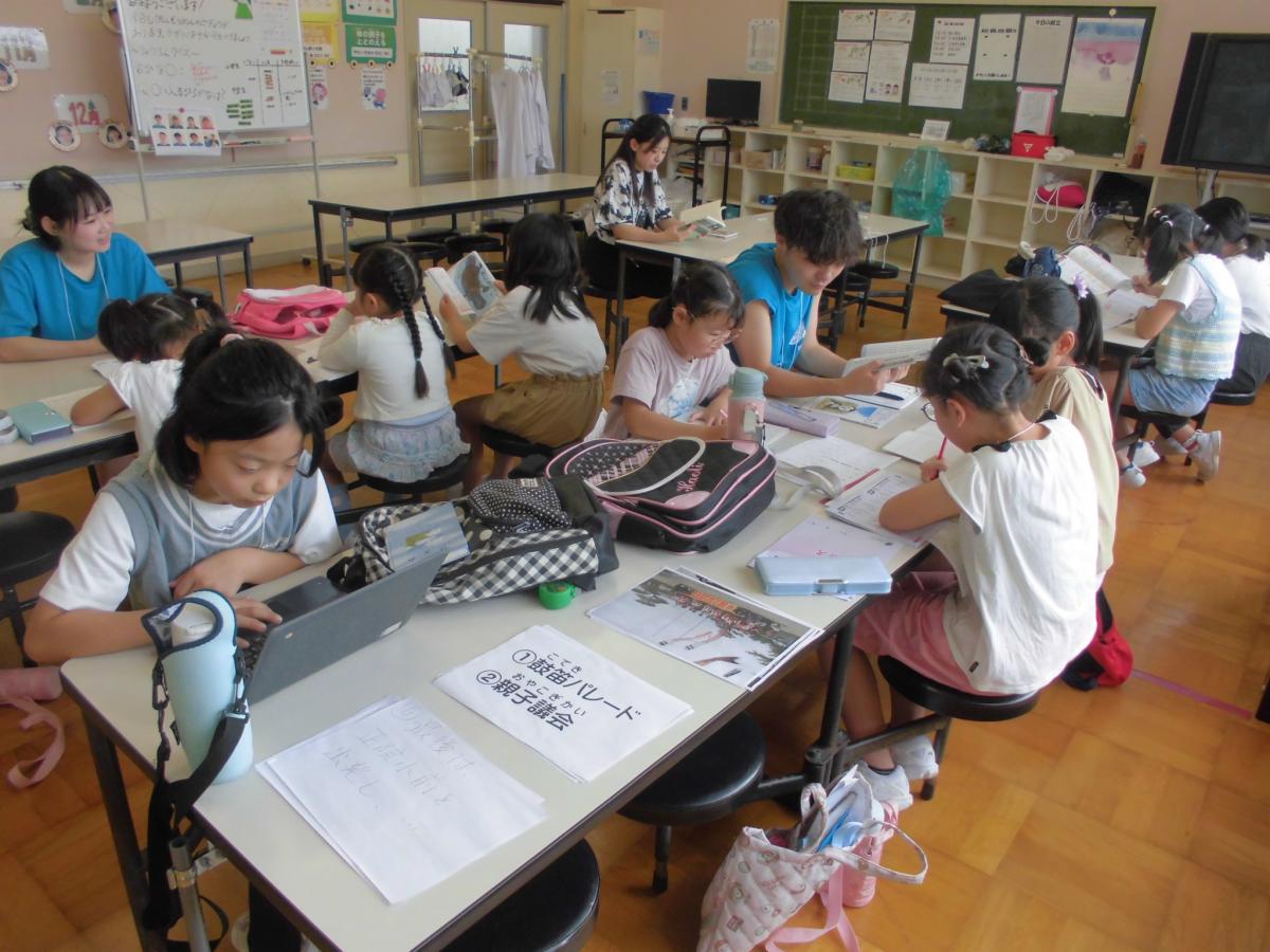 次は、活動の発表交流会です。地球市民学習さんは、夏休みに出かけて学んだことや調べたことなどの報告がありました。7月に地球市民学習さんが行ったイベントのことや広島に出かけ平和について考え調べたこと、万博に出かけて学んだこと、学校のクラブ活動について紹介してくれました。自分でプレゼンを作っての発表など、いろいろな工夫がありいろいろな学びがありました。本校からは、5年生が中心となって6月に行った鼓笛パレードのことや、8月に参加した親子議会で発表した内容を紹介しました。いろいろな質問もあって、楽しい学びの時間となりました。
